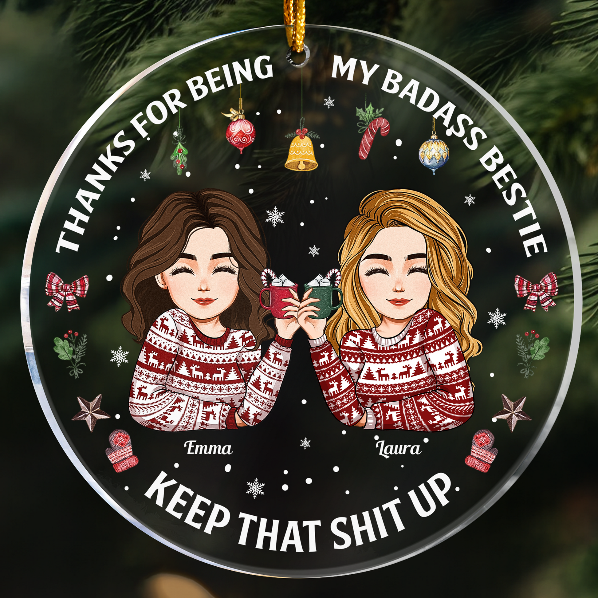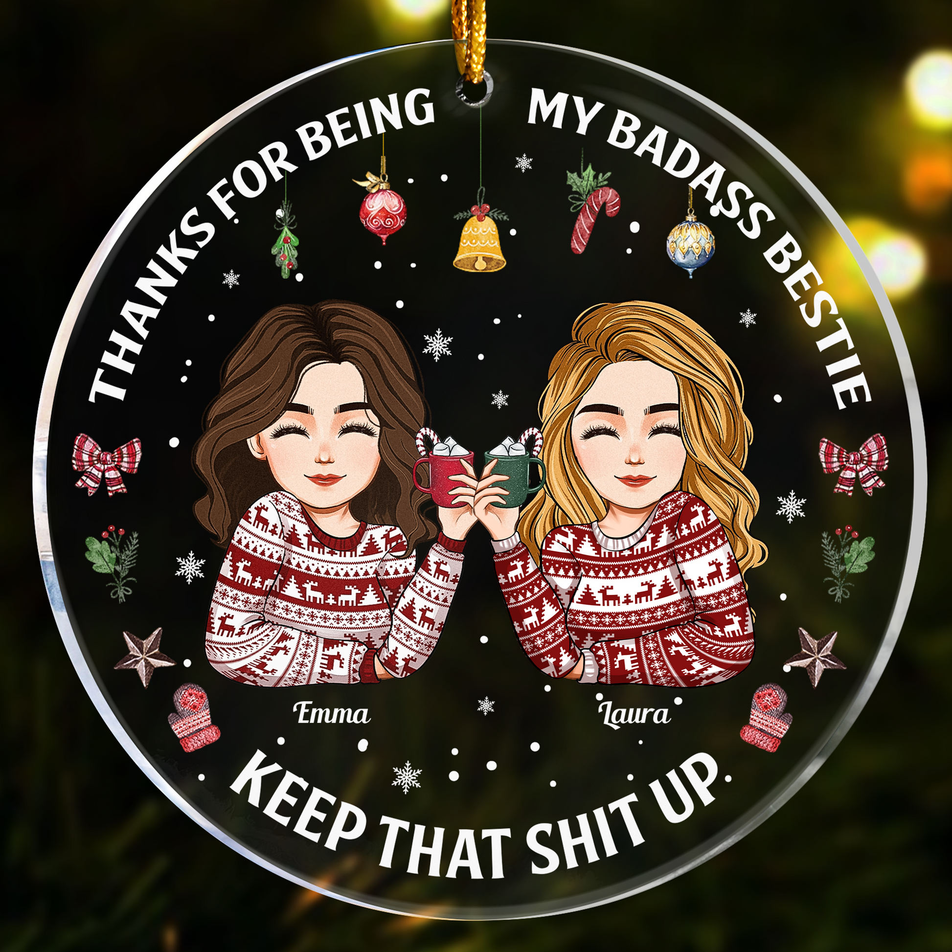 Thanks For Being My Badass Bestie - Personalized Acrylic Ornament