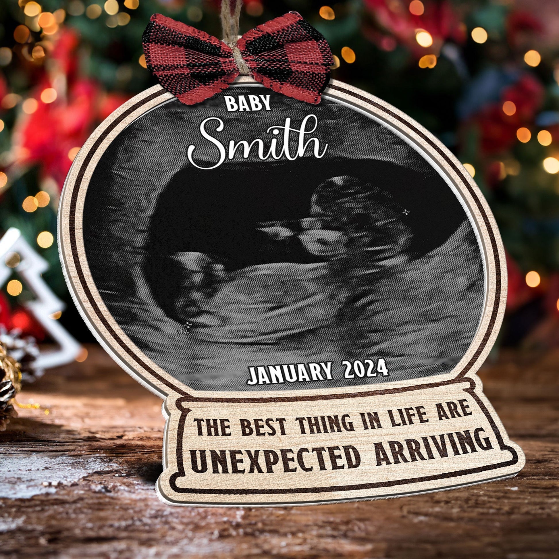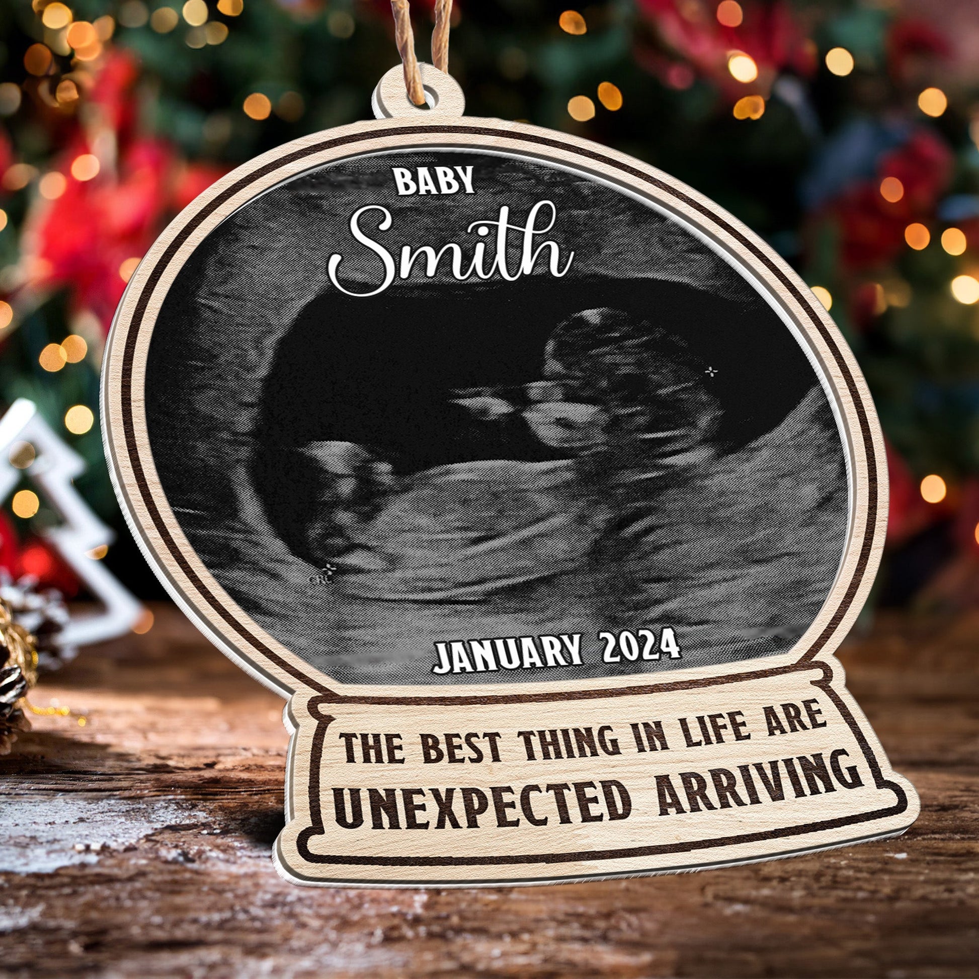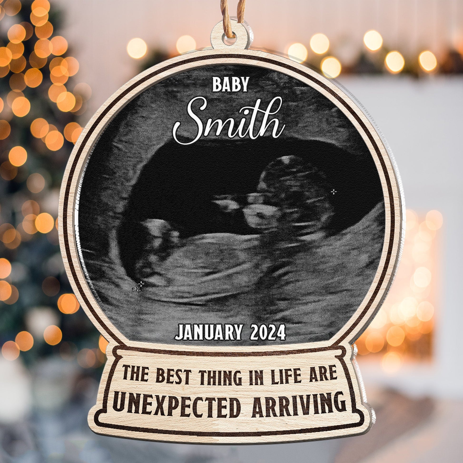 Introducing "The Best Thing In Life" – a heartfelt and customizable Photo Wood and Acrylic Ornament. Cherish life's precious moments with this exquisite keepsake that beautifully encapsulates the sentiment: "The Best Thing In Life Are Unexpected Arriving." Whether celebrating the joy of parenthood, welcoming a newborn into the world, or adding a touch of magic to your Christmas tree, this ornament is a thoughtful and enduring gift that captures the essence of love and surprise. Perfect for parents, newborns, and anyone seeking to add a touch of warmth to their holiday festivities.