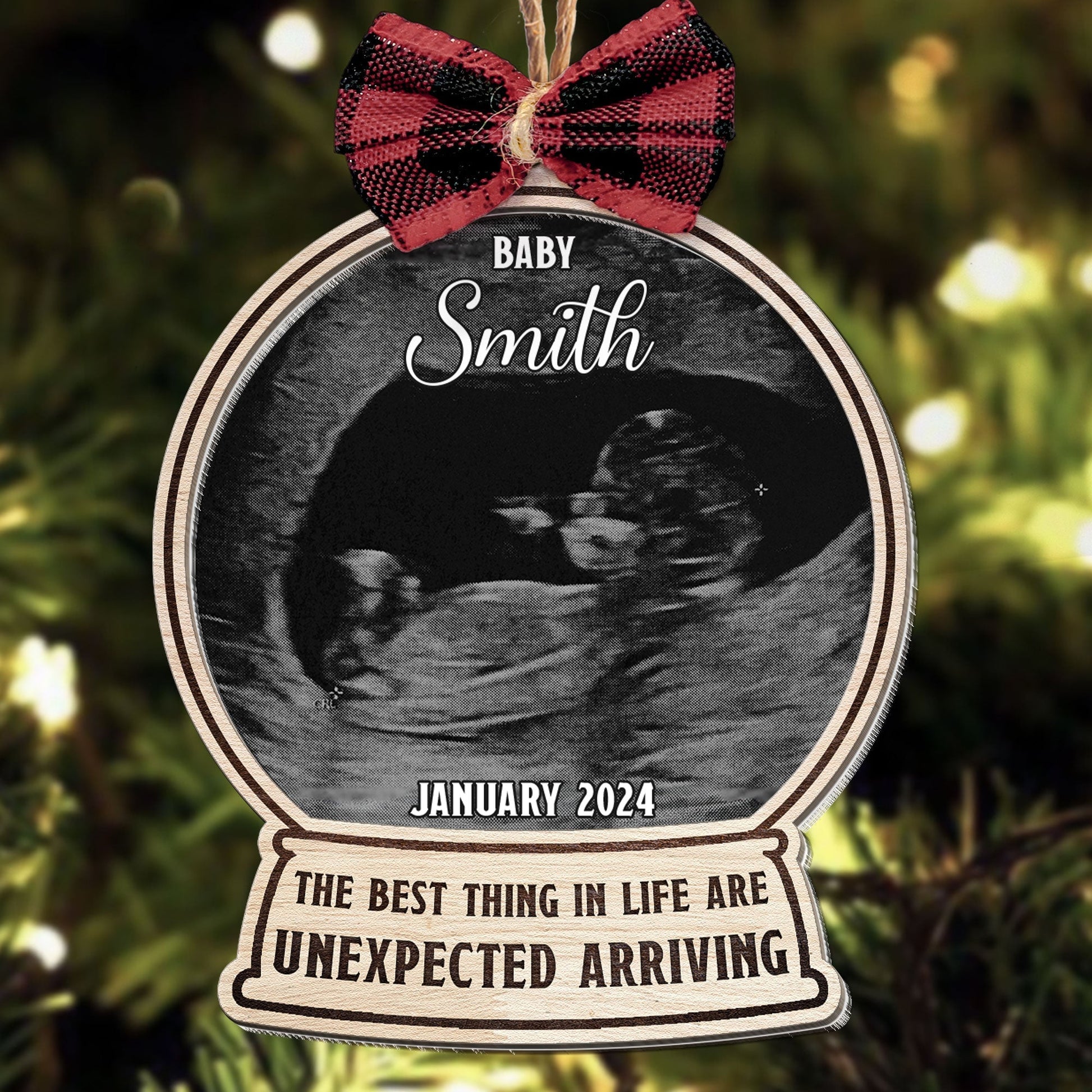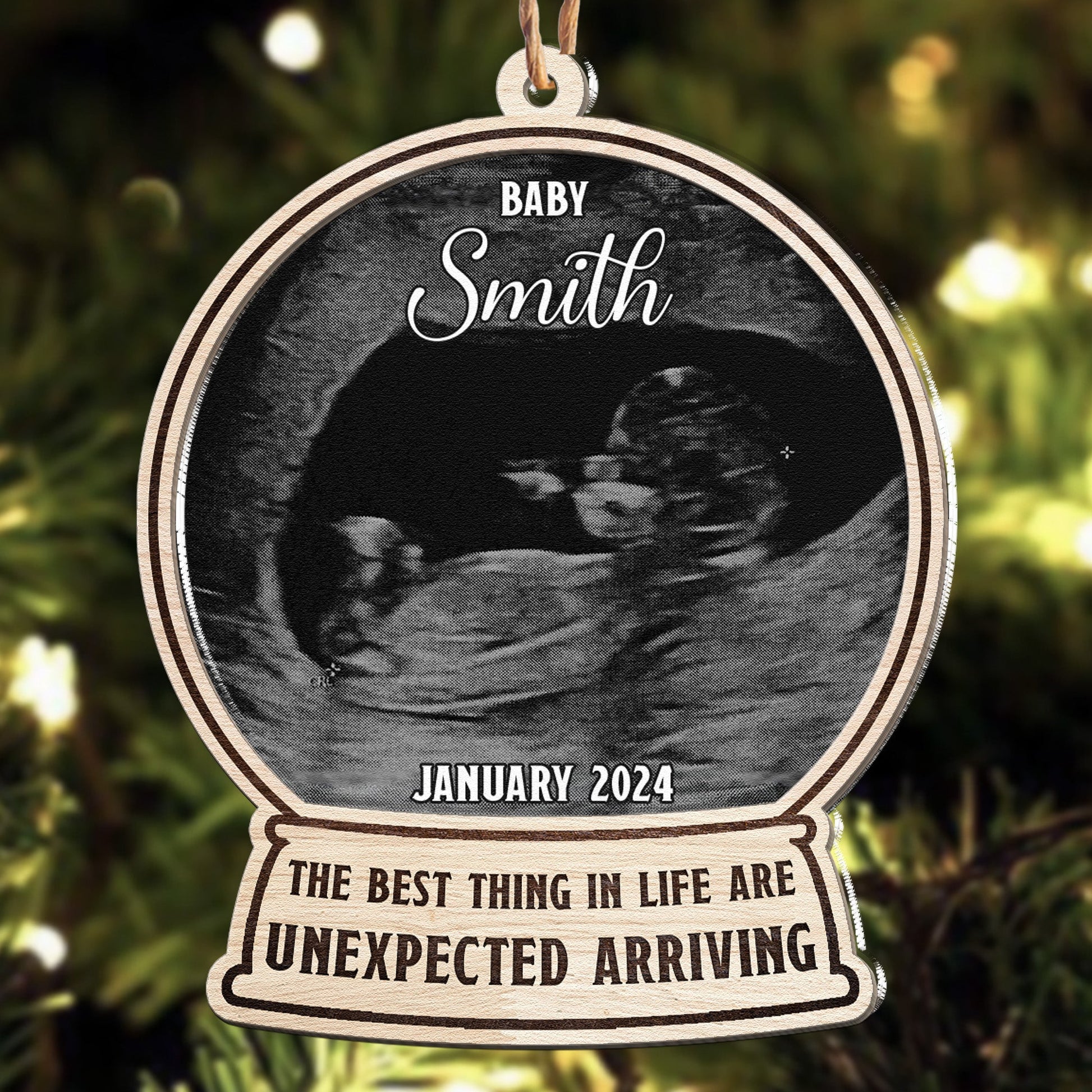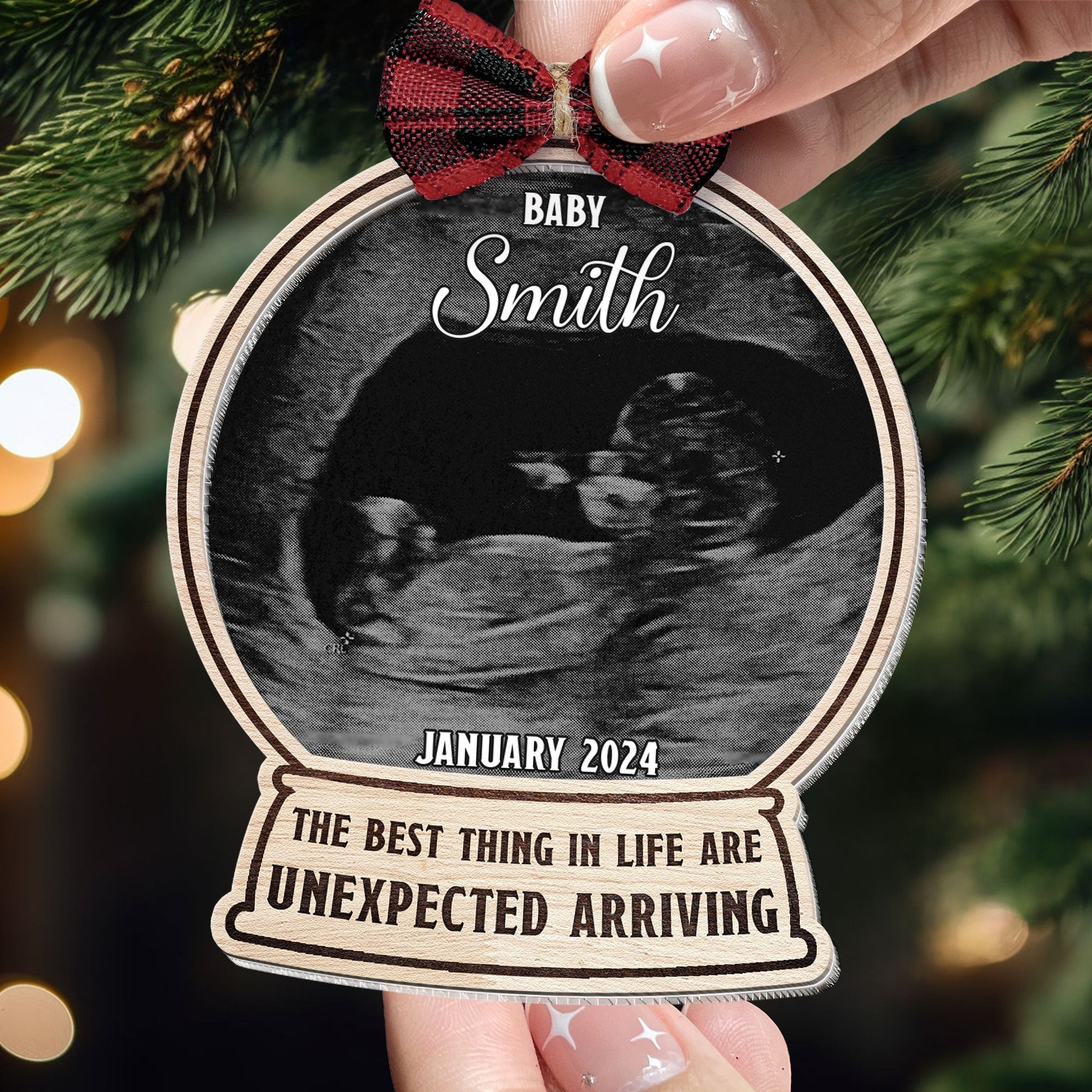 Introducing "The Best Thing In Life" – a heartfelt and customizable Photo Wood and Acrylic Ornament. Cherish life's precious moments with this exquisite keepsake that beautifully encapsulates the sentiment: "The Best Thing In Life Are Unexpected Arriving." Whether celebrating the joy of parenthood, welcoming a newborn into the world, or adding a touch of magic to your Christmas tree, this ornament is a thoughtful and enduring gift that captures the essence of love and surprise. Perfect for parents, newborns, and anyone seeking to add a touch of warmth to their holiday festivities.