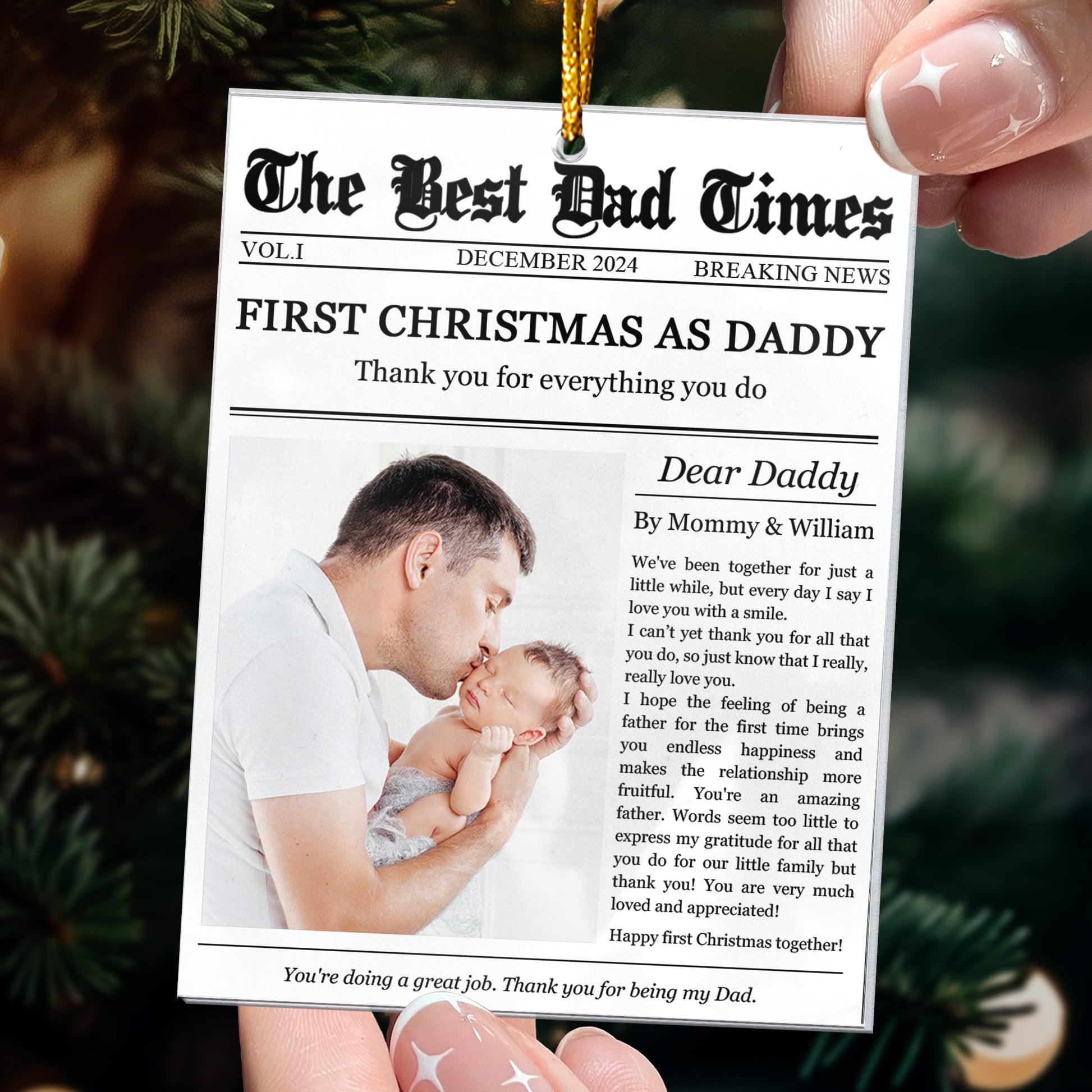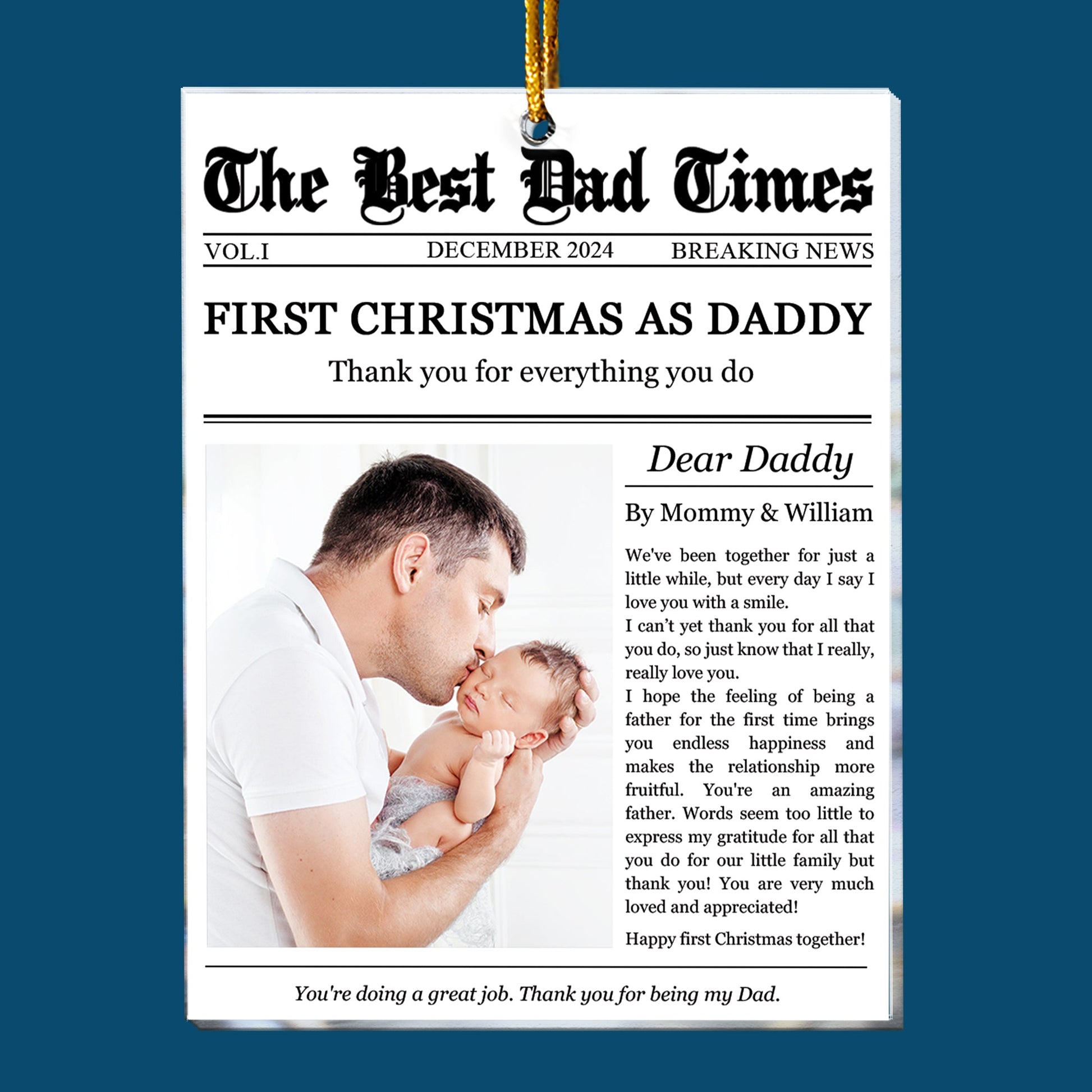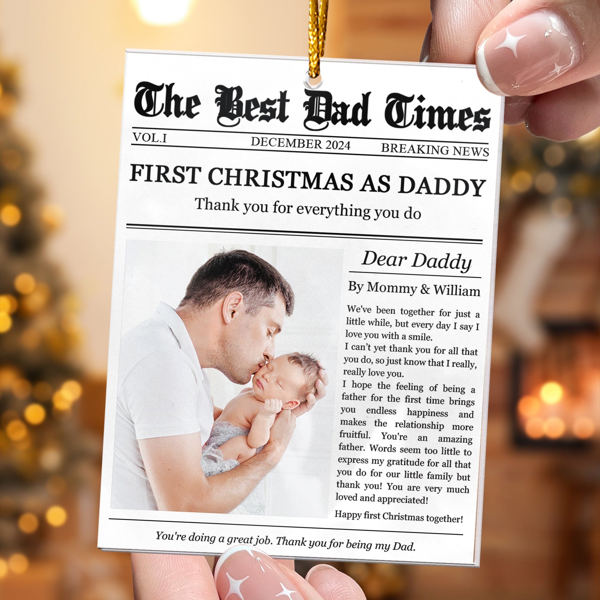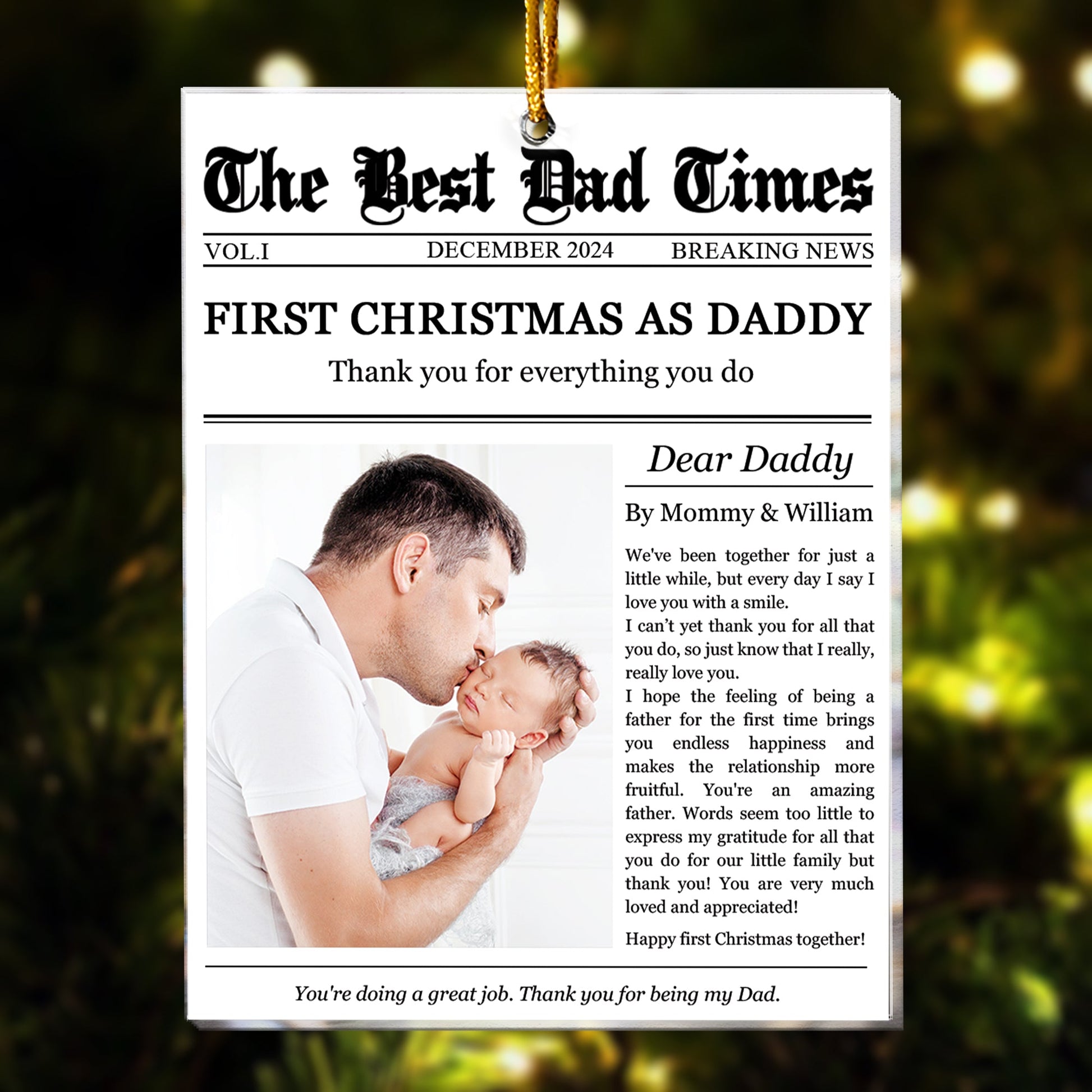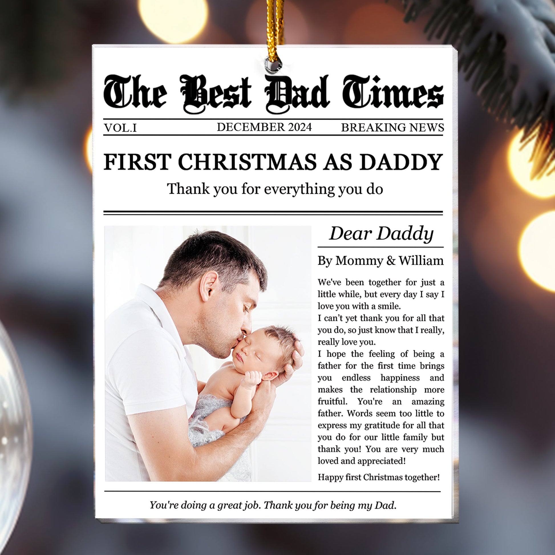 The First Christmas As Daddy Times Newspaper - Personalized Acrylic Photo Ornament