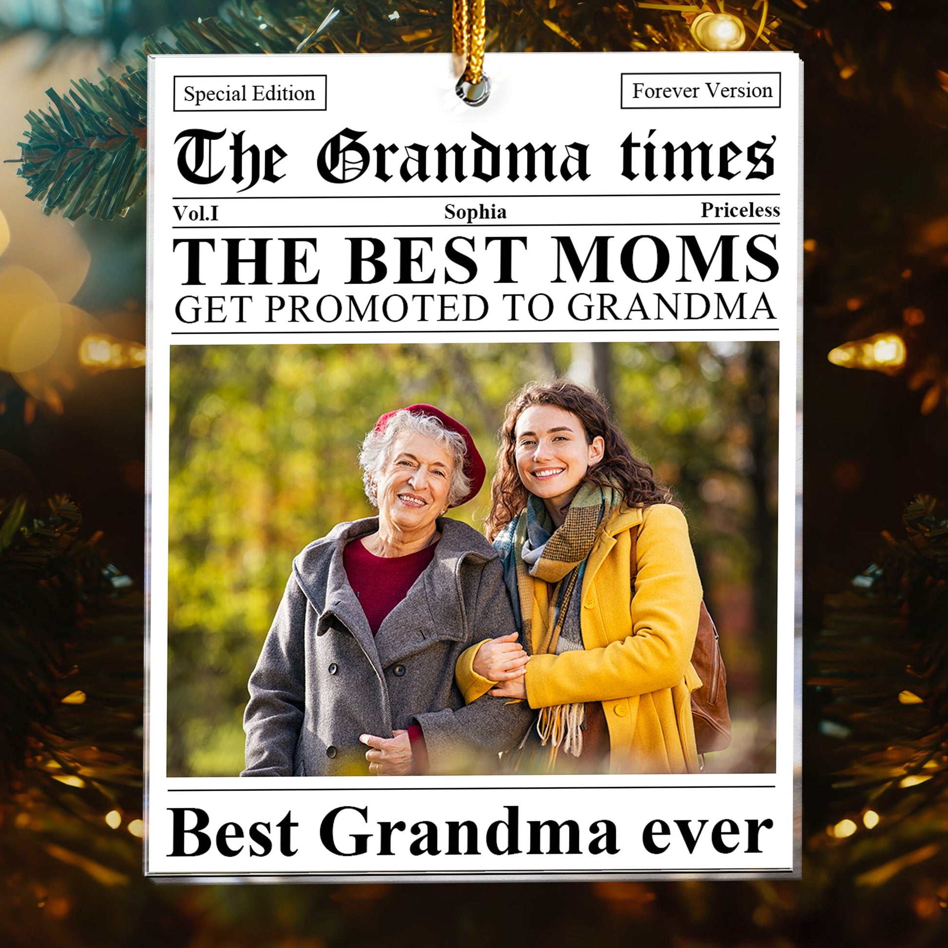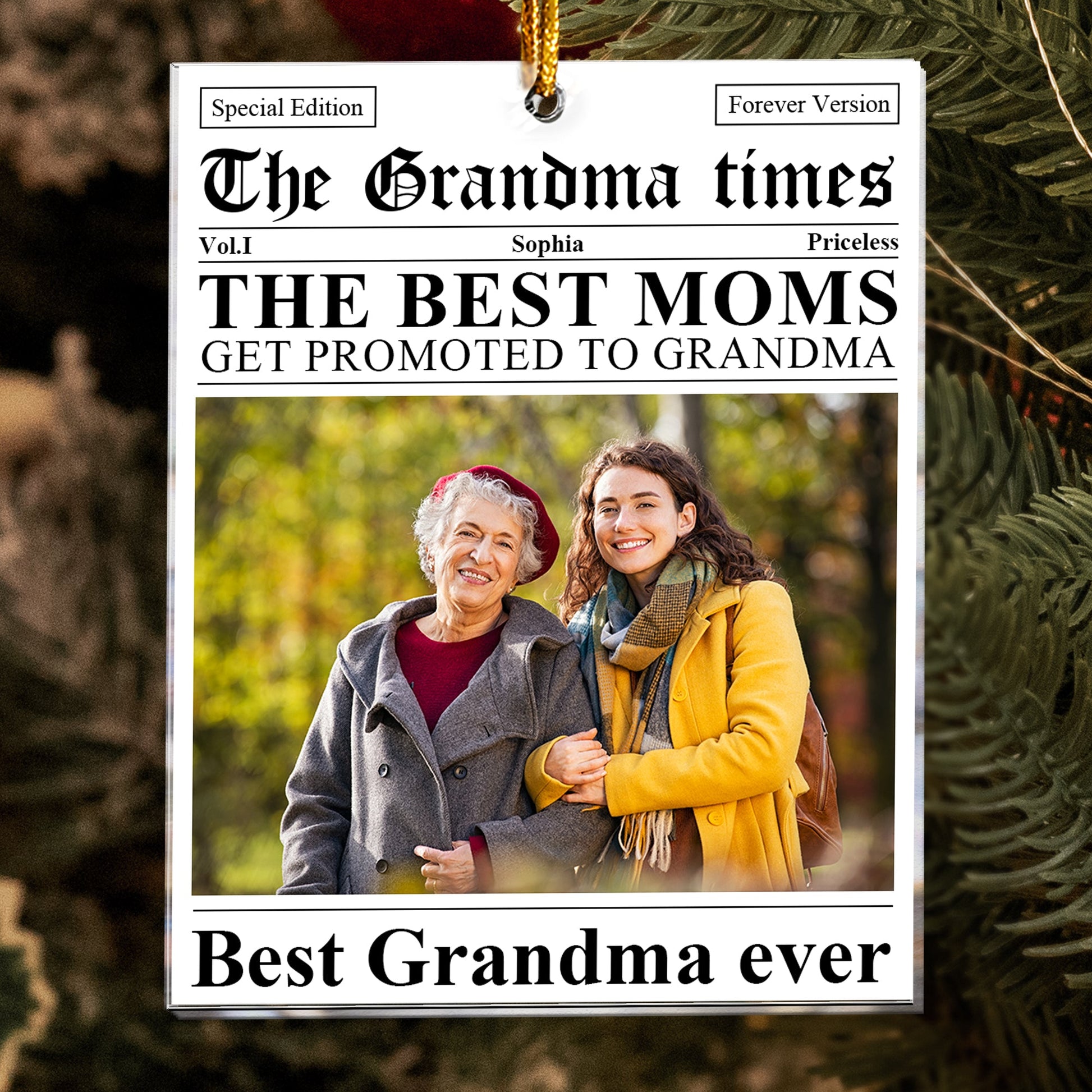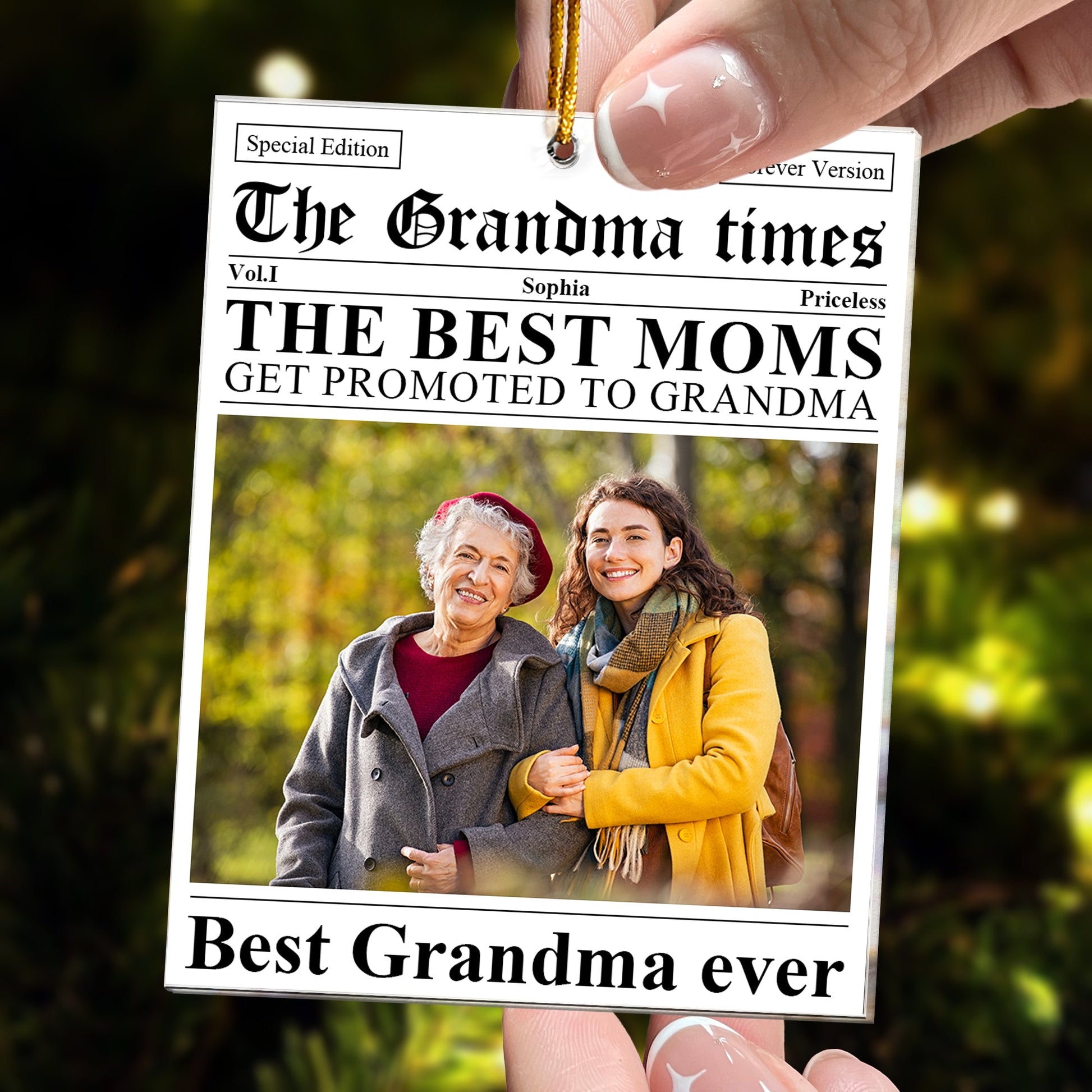 The Grandma Times Grandma Gifts Newspaper - Personalized Acrylic Photo Ornament