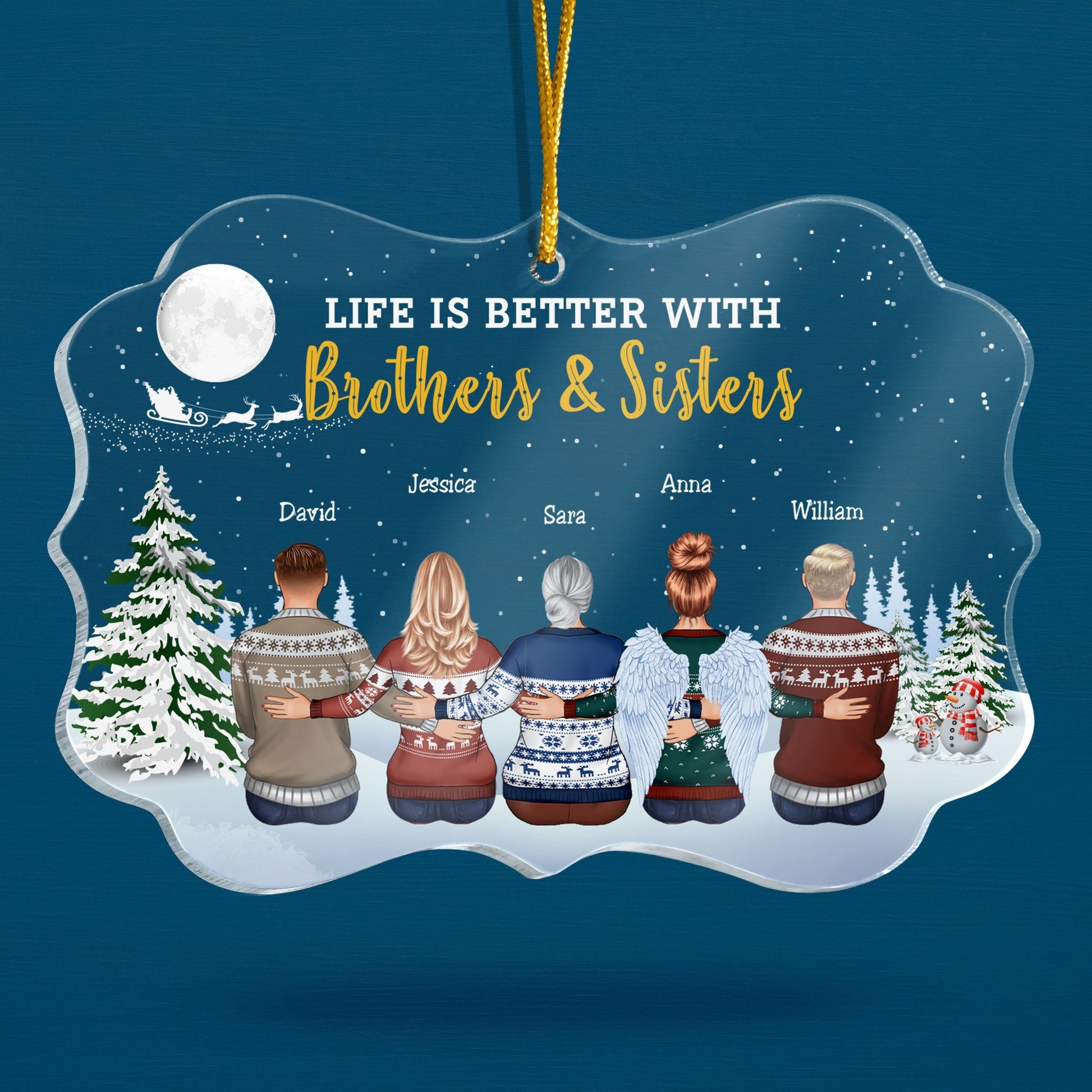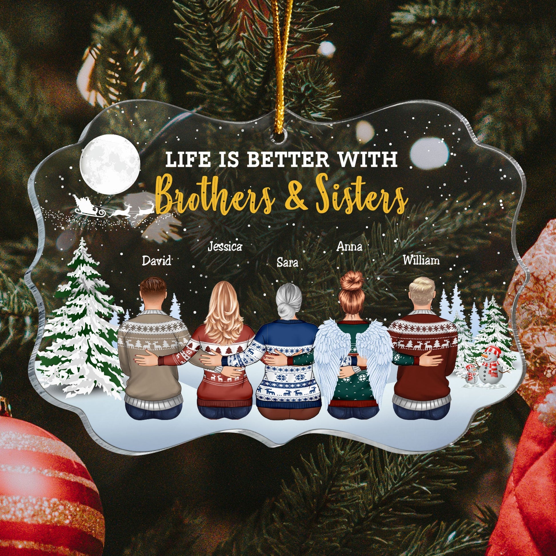 If you are looking for a unique and thoughtful gift for your family, look no further than personalized family ornaments. These ornaments are not only beautiful, but also meaningful. They show your family how much you love them and how well you know them. You can personalize them with your favorite photos, quotes, or jokes that only you two understand. You can also choose a design that matches their hobbies, interests, or passions. Personalized family ornaments are the perfect way to say “I love you” to your siblings this Christmas. They will surely make them smile and feel special.
