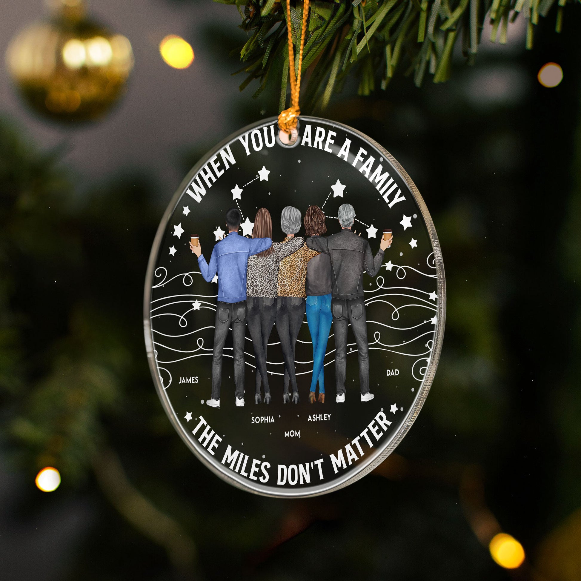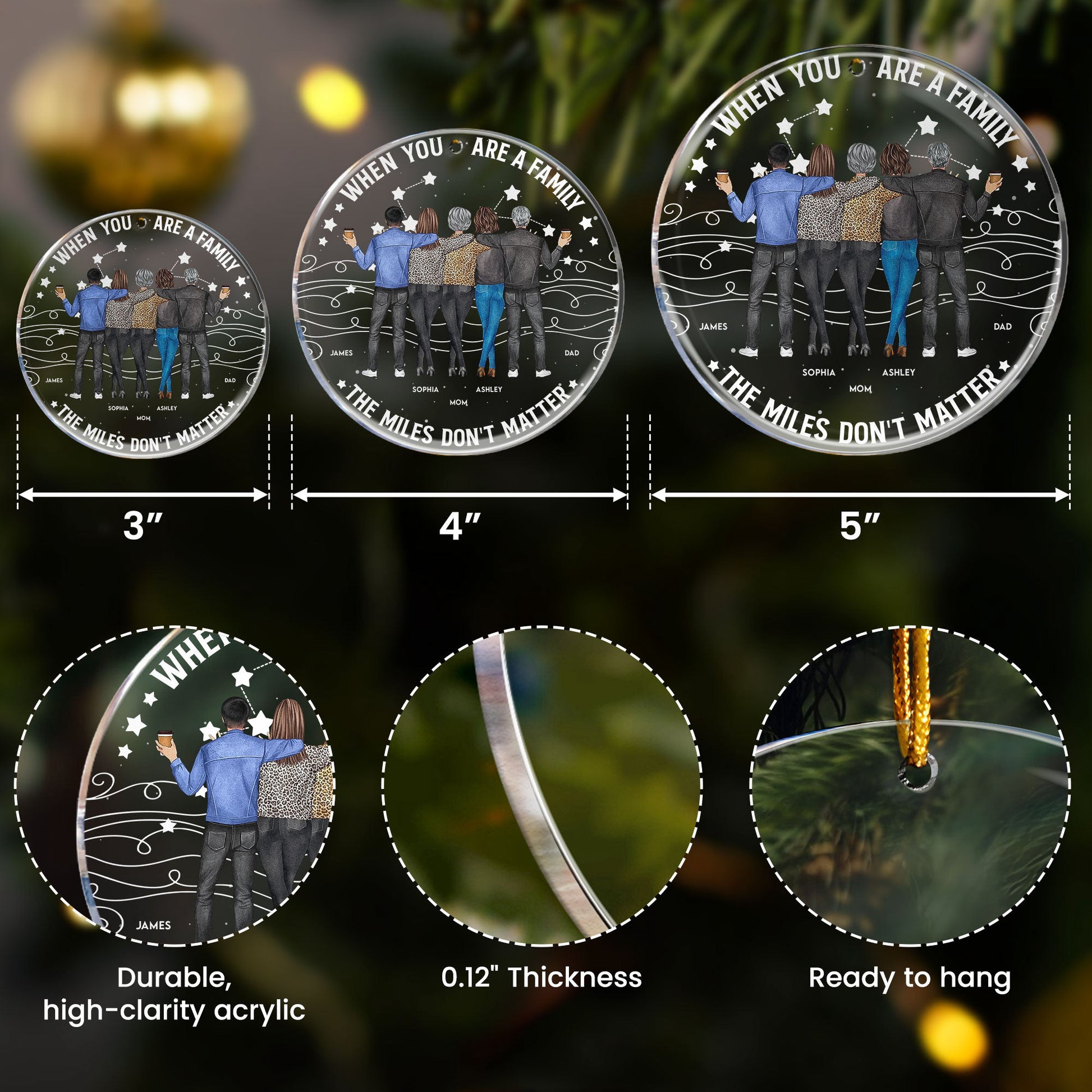 This ornament doesn’t just hang on a tree, but indeed weaves itself into the very fabric of your family memories, resonating with a profound message that while you're a family, the miles don't matter. Being an emblem of unity and togetherness, this piece lends itself splendidly to the joyous occasions such as Christmas. It's not just an ornament but a declaration of love that spans miles, making it a wonderful gift for birthdays, anniversaries, or any special occasion. So, whether you're looking to decorate your own space or seeking a gift that speaks volumes, go ahead and order this Circle Acrylic Ornament - a symbol that love knows no boundaries.