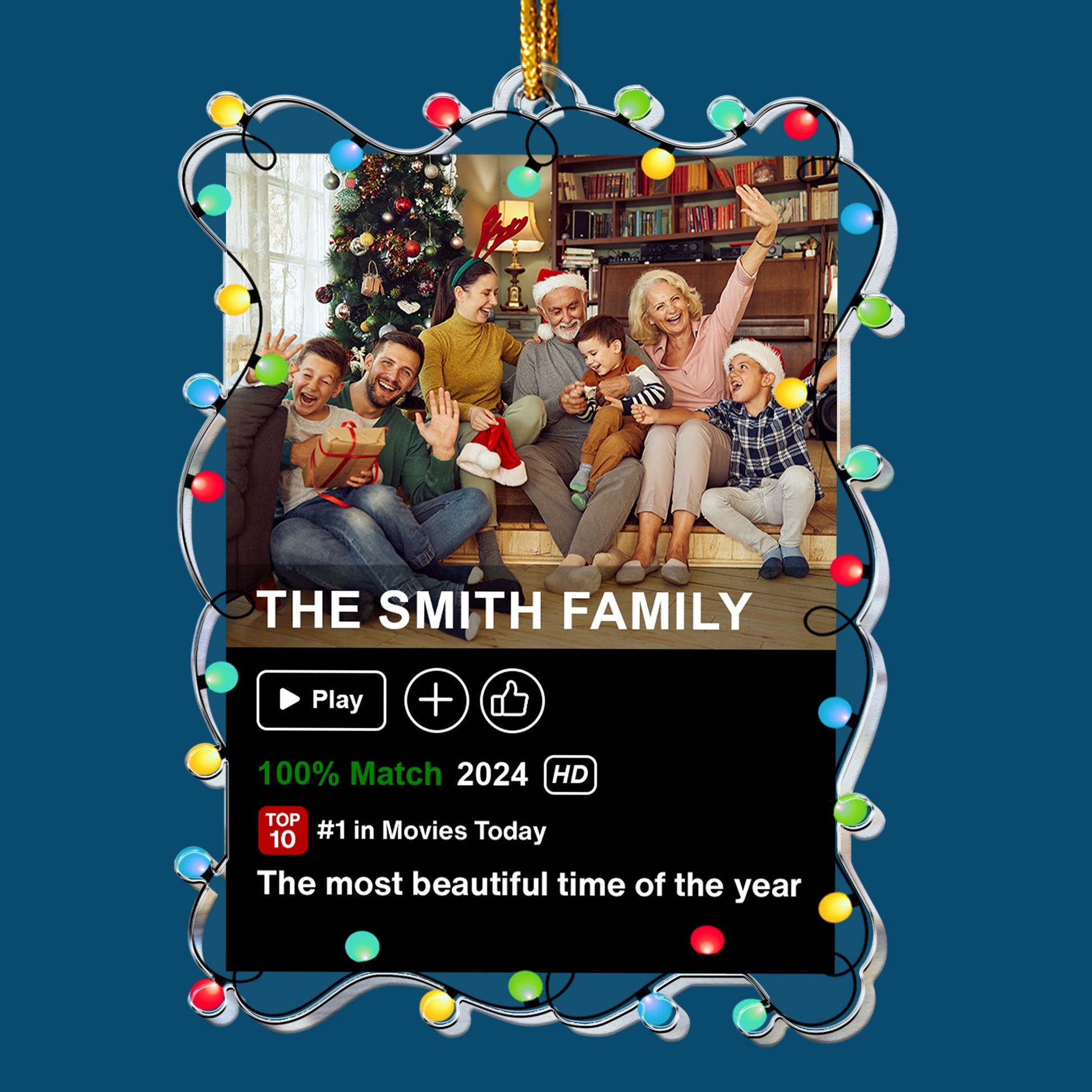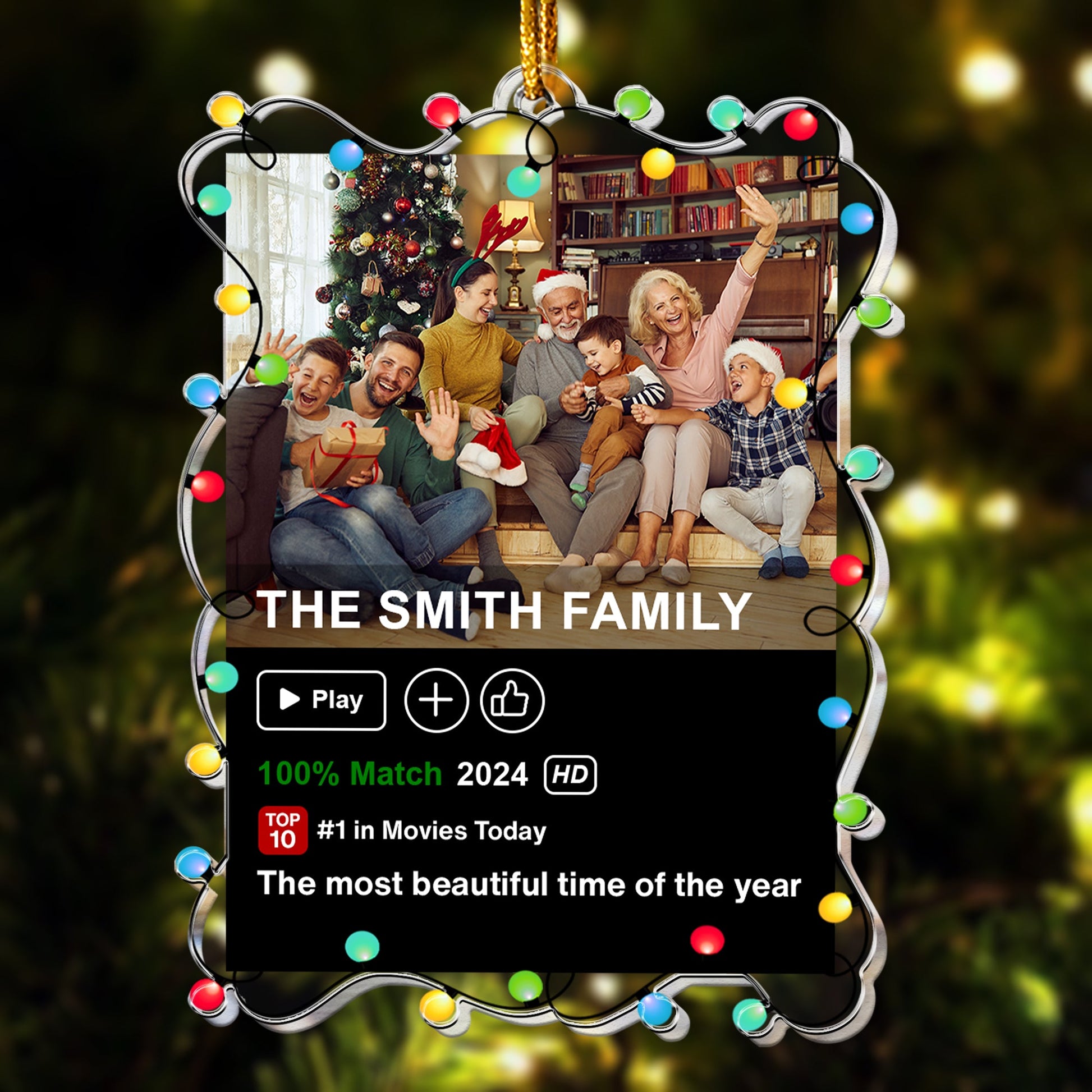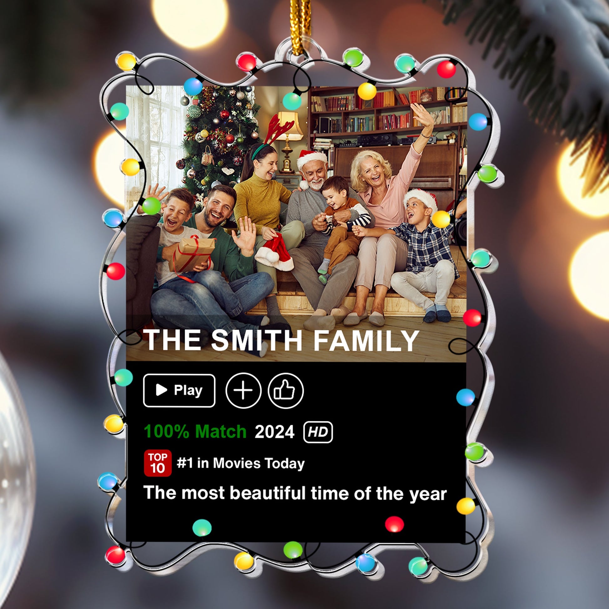 Bring the joy of family and the magic of the season to your tree with our Personalized Family Ornament in “The Most Beautiful Time of the Year” Netflix-inspired theme! Featuring an updated family photo, this unique ornament combines the warmth of holiday traditions with the cozy feel of a favorite binge-worthy night, creating a keepsake that celebrates togetherness.
