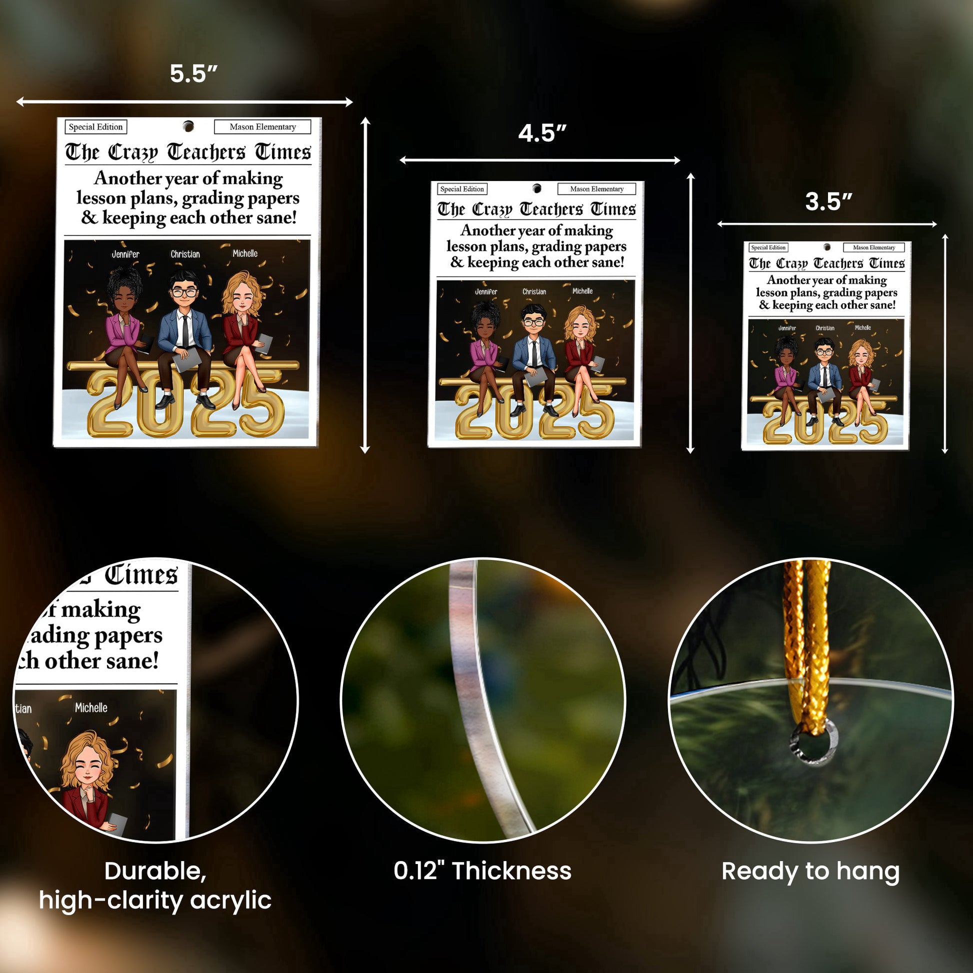 Introducing our unique Custom Shaped Acrylic Ornament, aptly named "The Teachers Times". Perfect for school events, Christmas, birthdays, anniversaries, or any such occasions, this delightful ornament embodies the strong bonds that form over time between colleagues turned close friends. Especially tailored for all the hardworking teachers out there, its enigmatic message hints at the camaraderie and shared resilience amidst grading papers and planning lessons together.