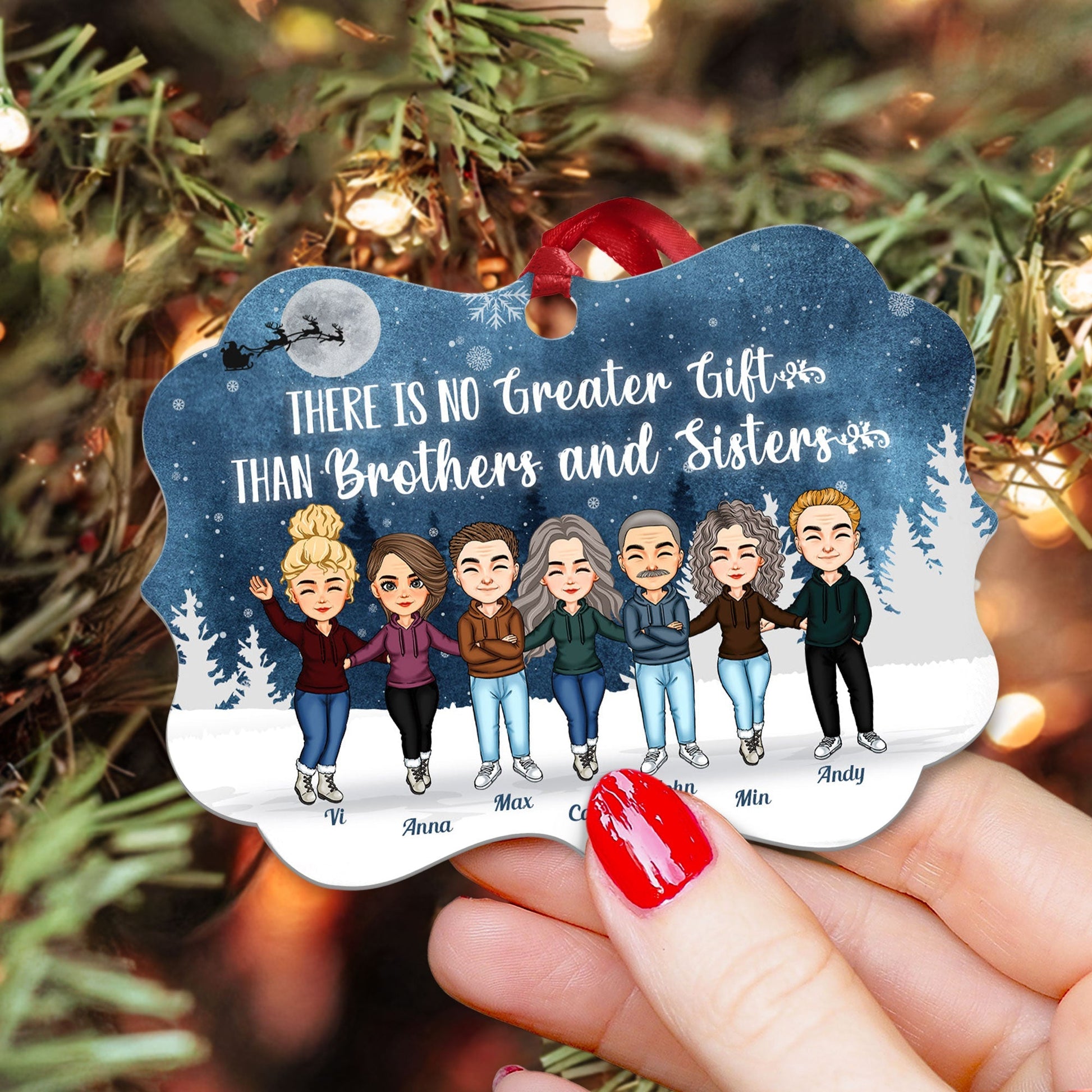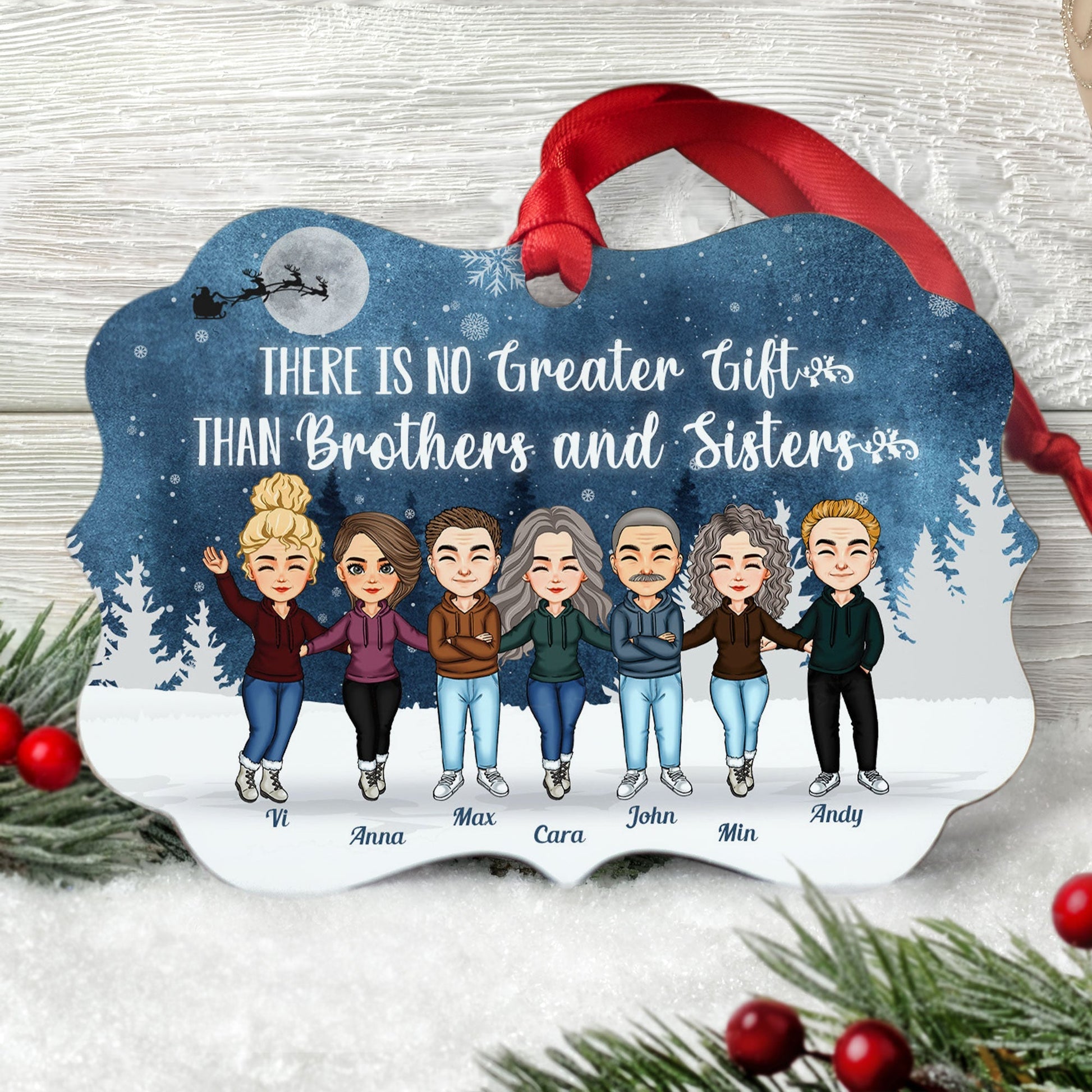 There's No Greater Gift Than Siblings - Personalized Aluminum/Wooden Ornament - Christmas Gift For Siblings, Family Members