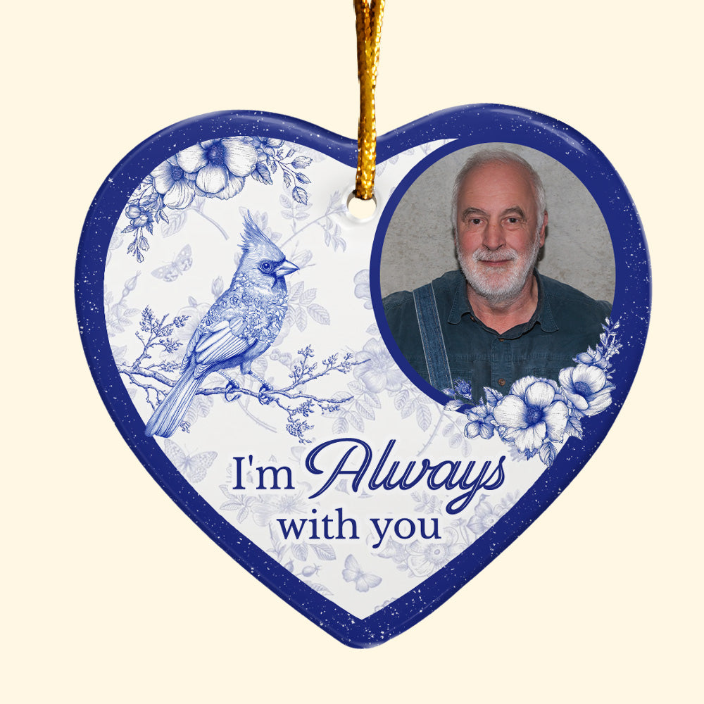 Toile De Jouy Style Memorial I'm Always With You - Personalized Ceramic Photo Ornament