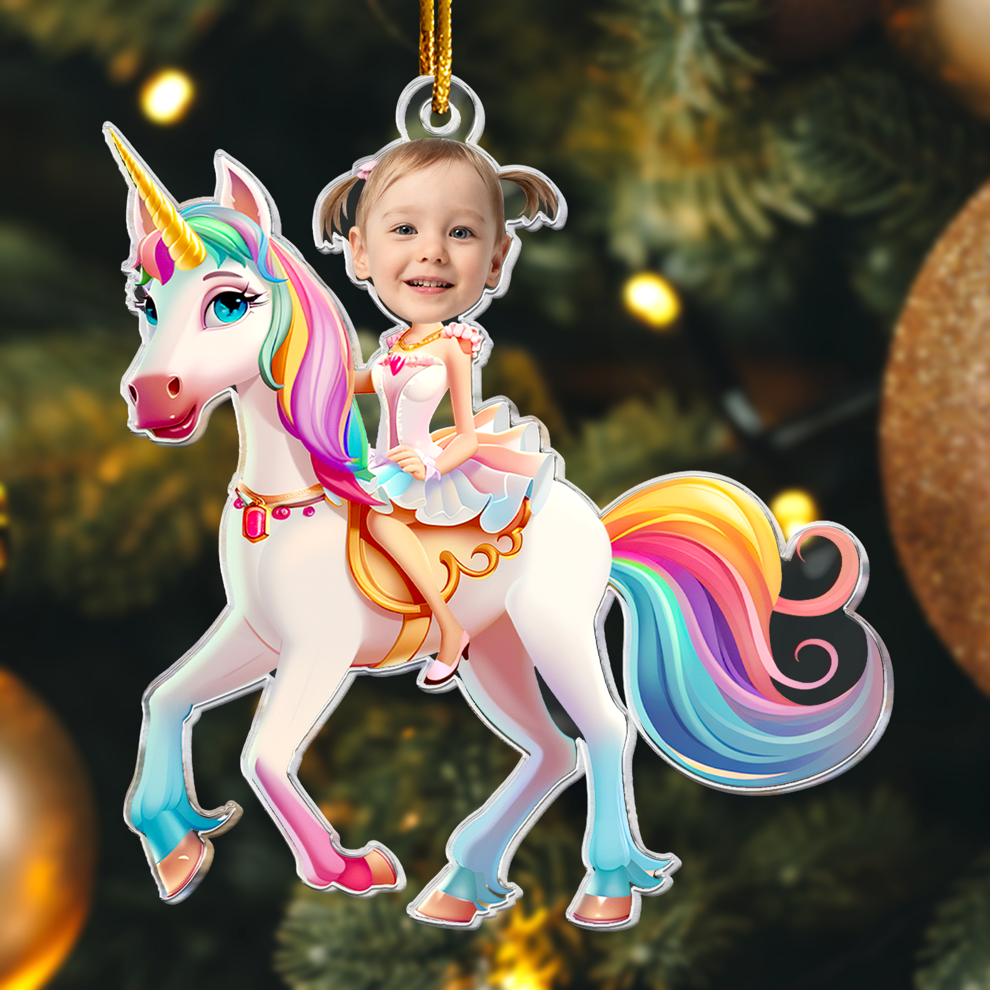 Unicorn Princess - Custom Face Ornament Gifts For Girl, Daughter - Personalized Acrylic Photo Ornament