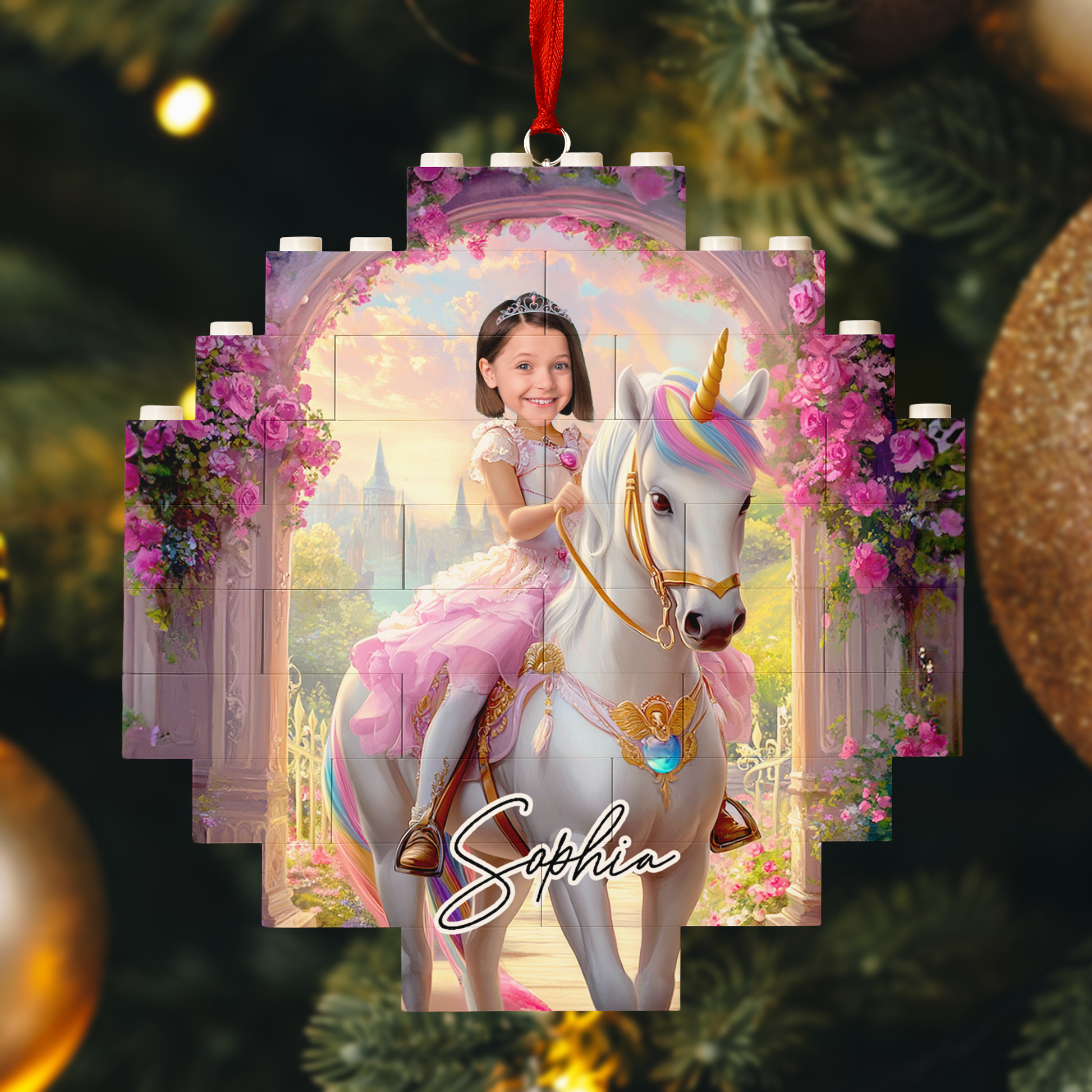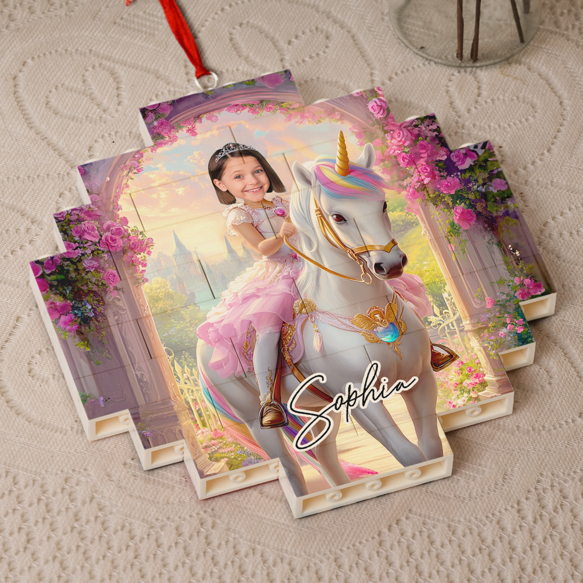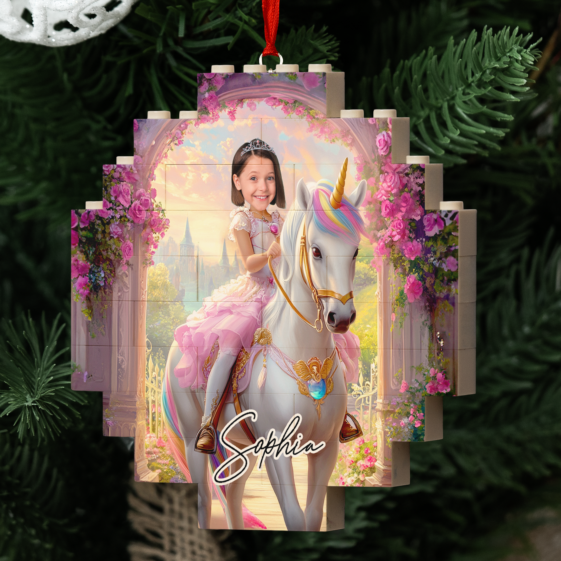 Unicorn Princess - Xmas Gifts For Little Girls, Daughter - Custom Buildable Christmas Photo Ornament