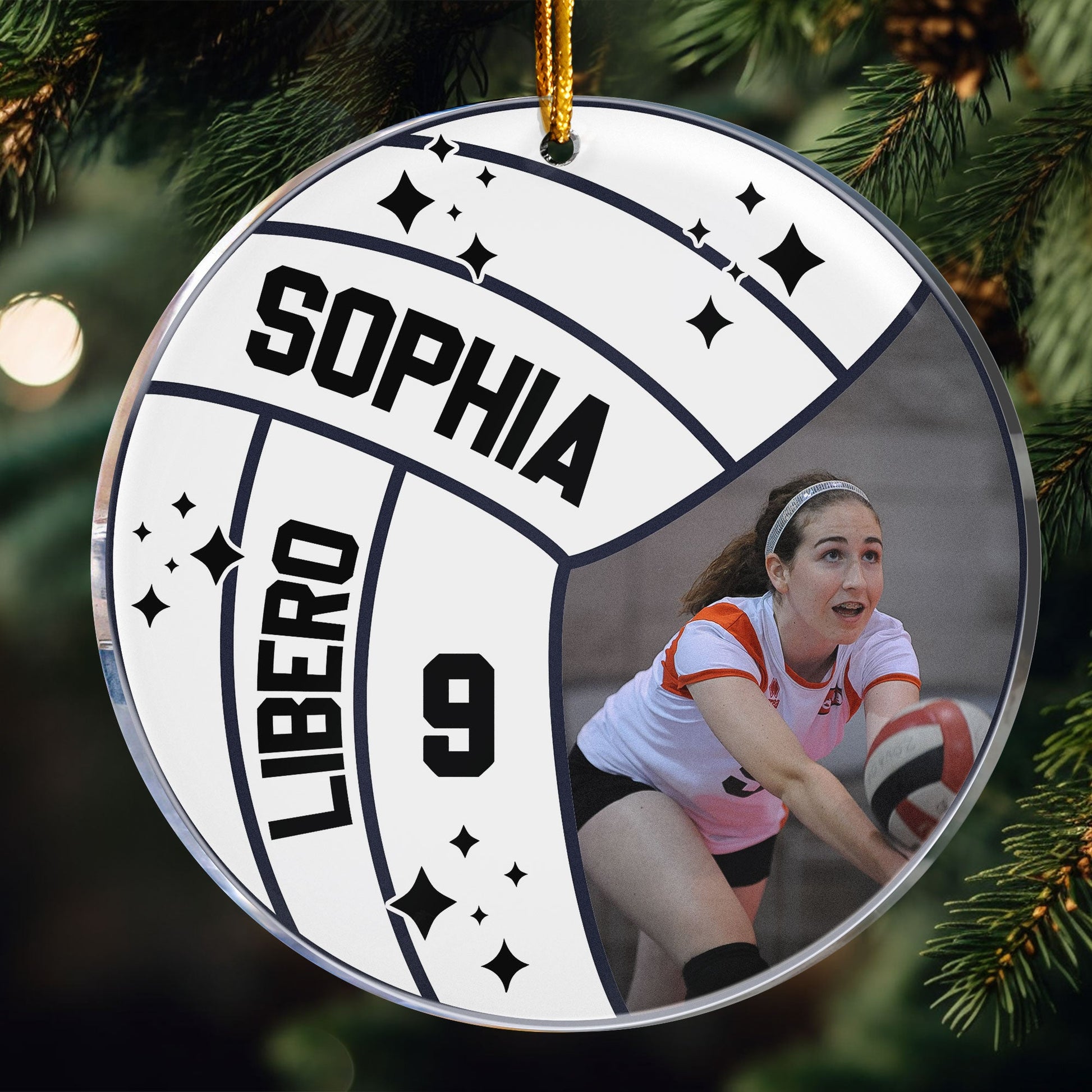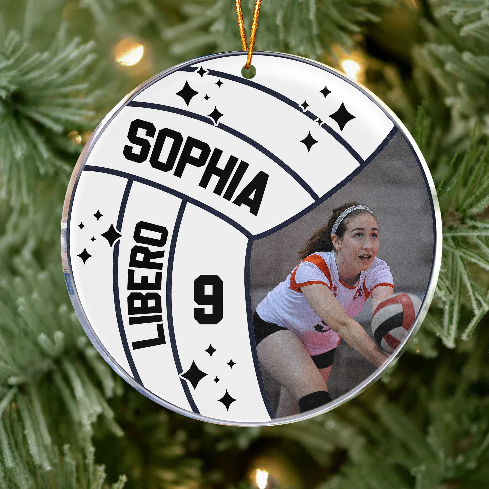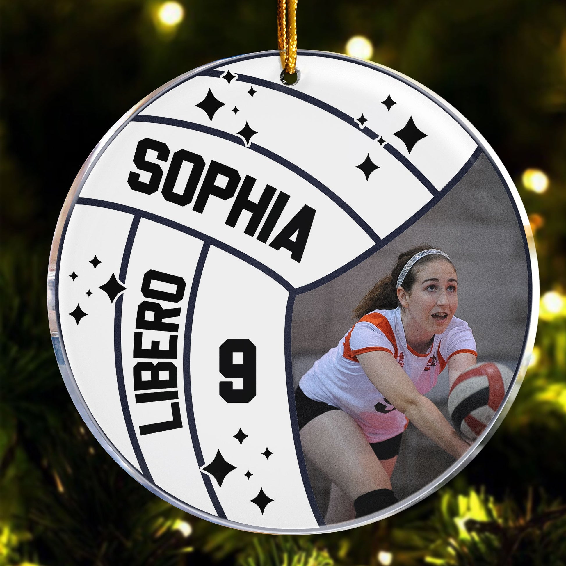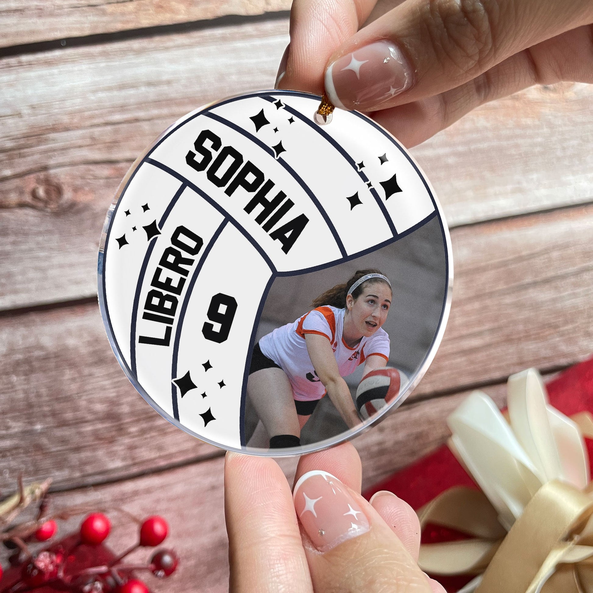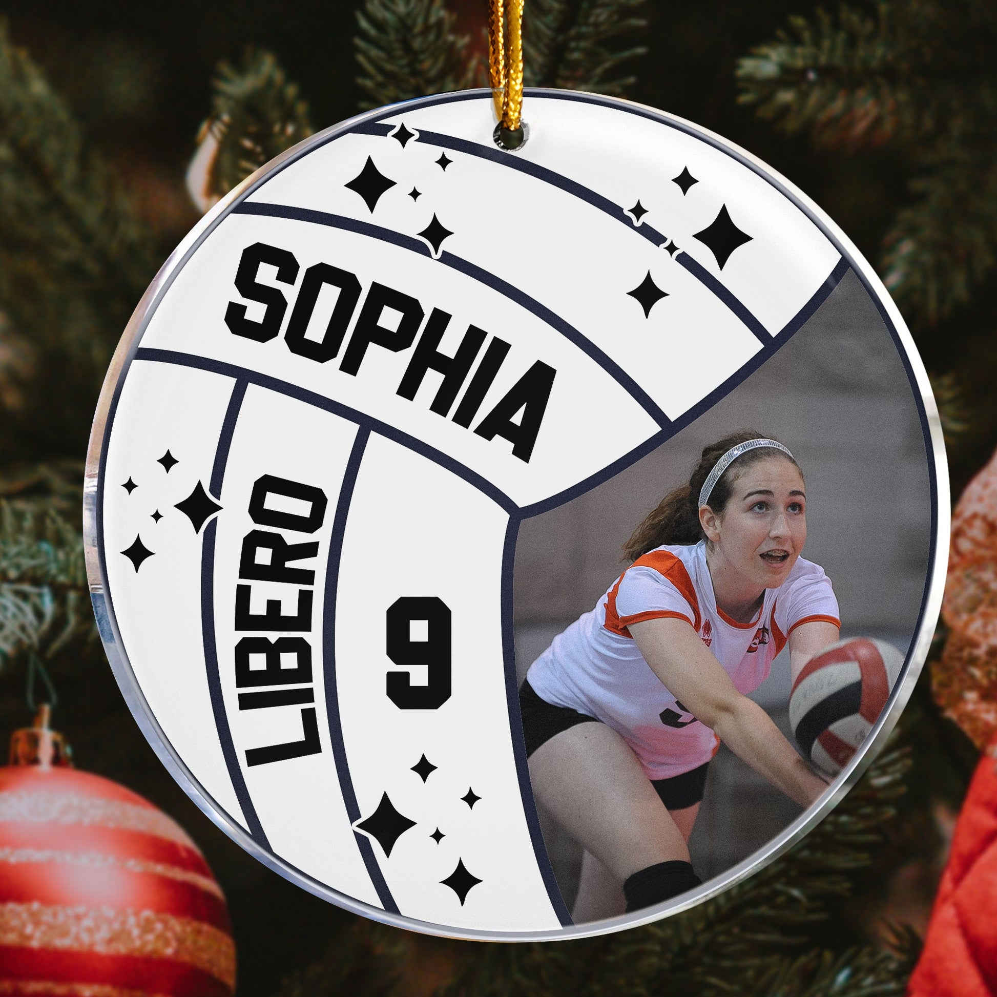 What makes this ornament truly unique is the option to customize it with names, numbers, or playing position, turning it into a treasured keepsake that celebrates their love for volleyball. Imagine the joy on their faces when they hang this ornament on the tree, reminiscing about their favorite memories on the court.