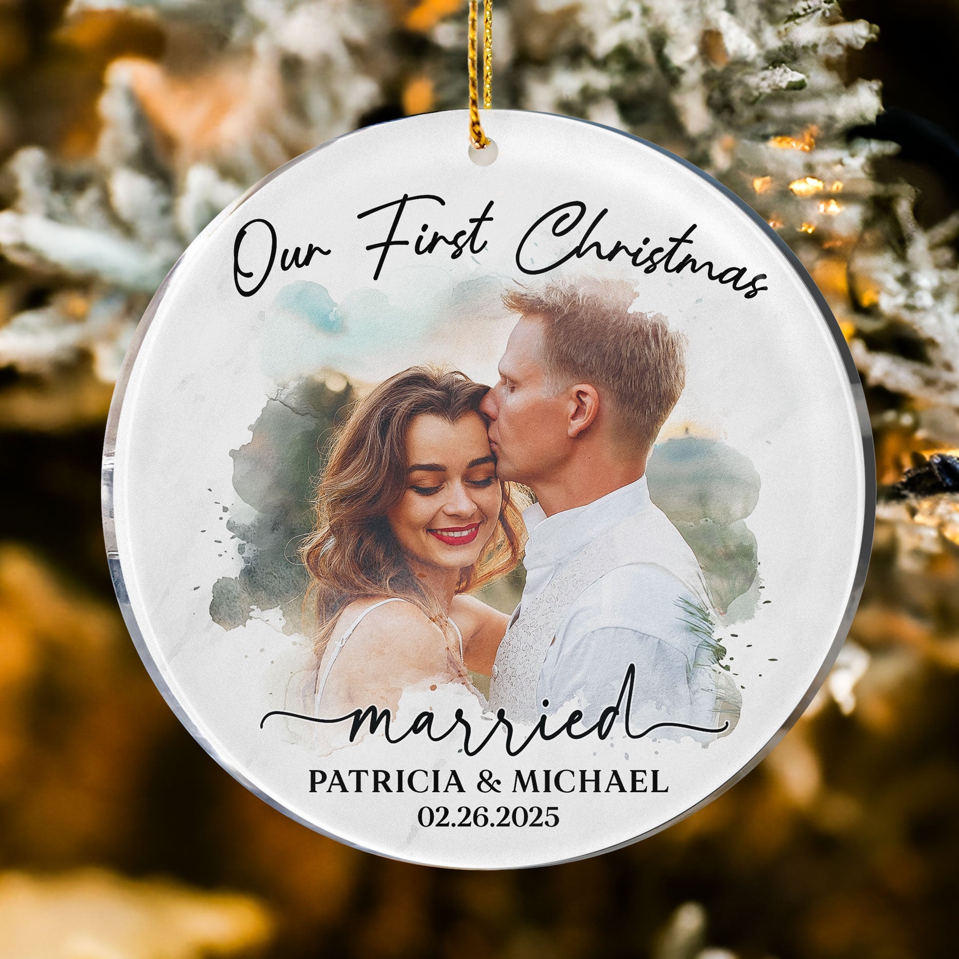 Watercolor Style Our First Christmas Married - Personalized Acrylic Photo Ornament