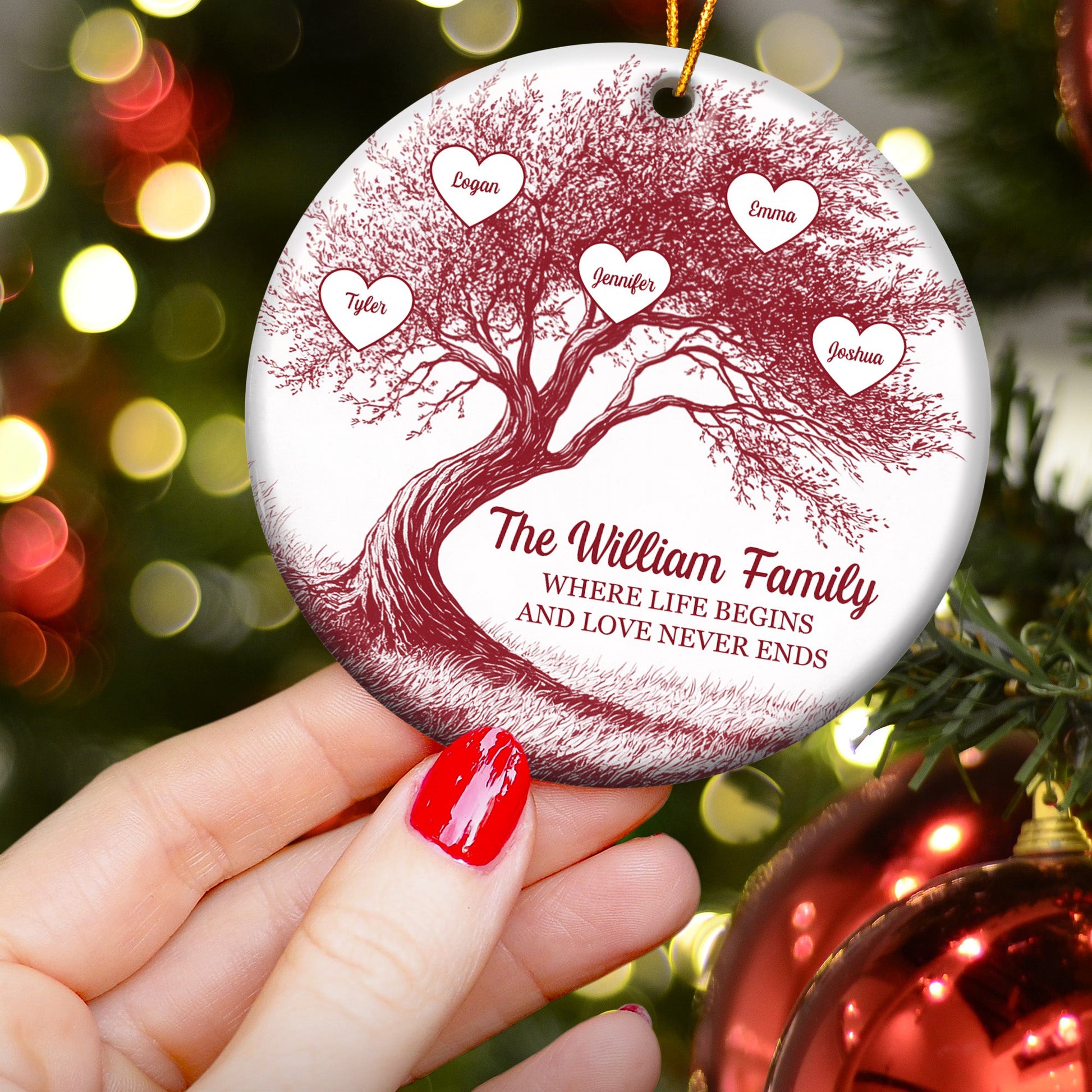 Where Life Begins And Love Never Ends - Personalized Ceramic Ornament