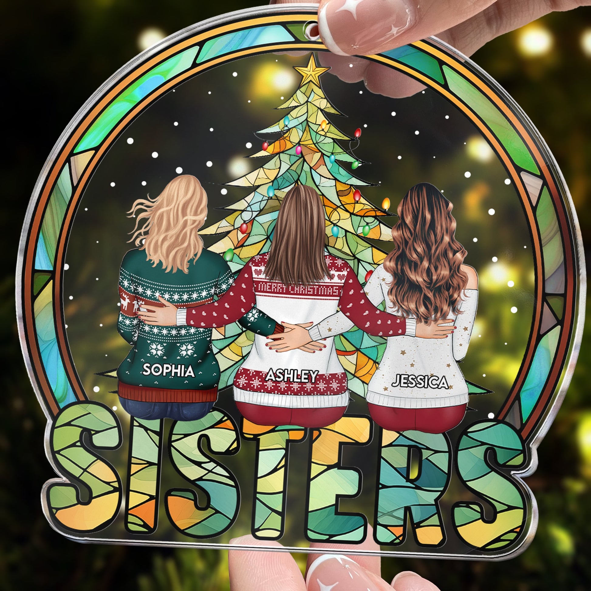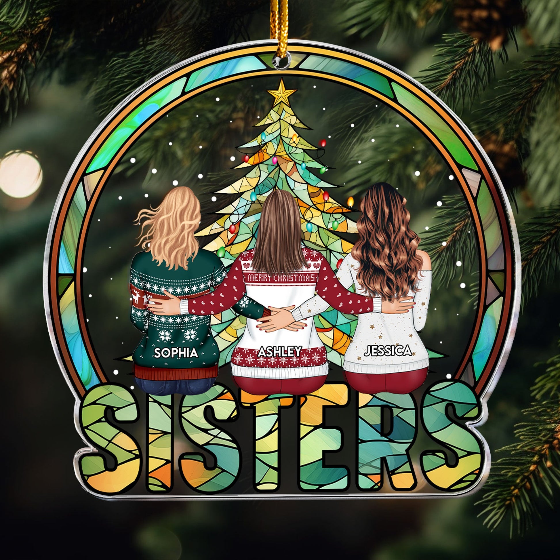 Sisters Under Christmas Tree Stained Glass Style - Personalized Acrylic Ornament