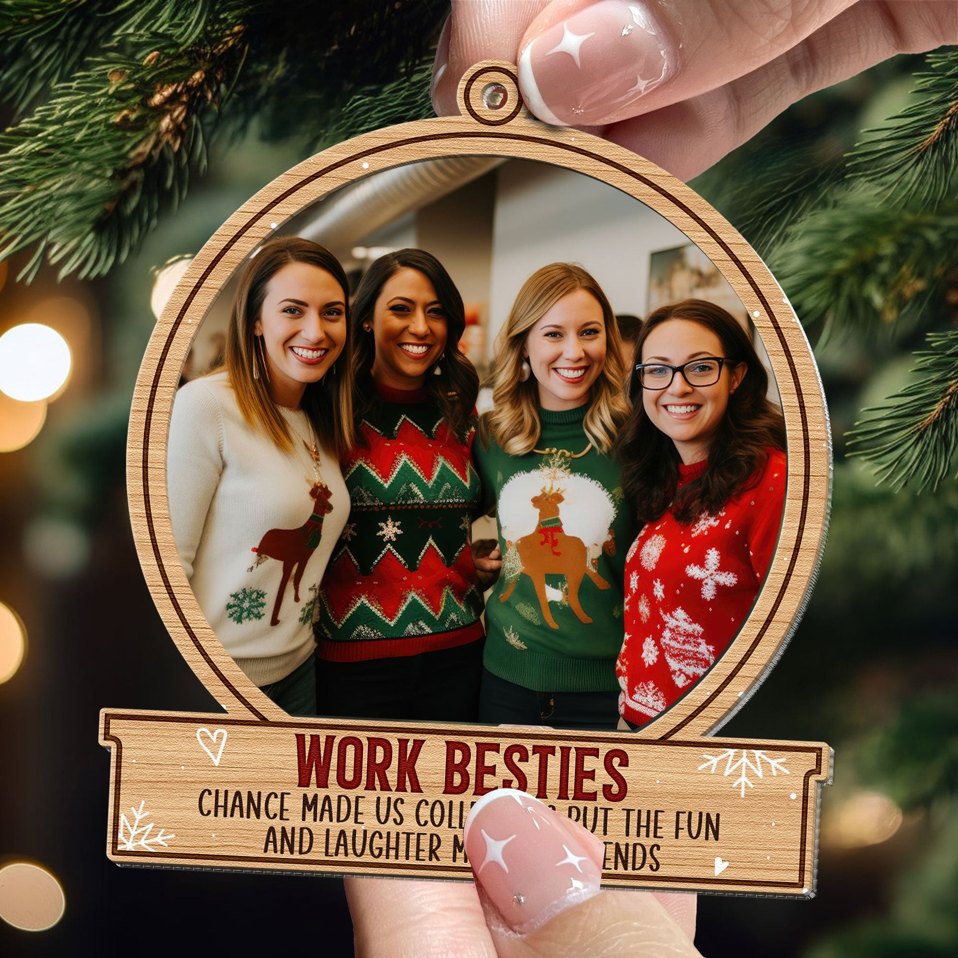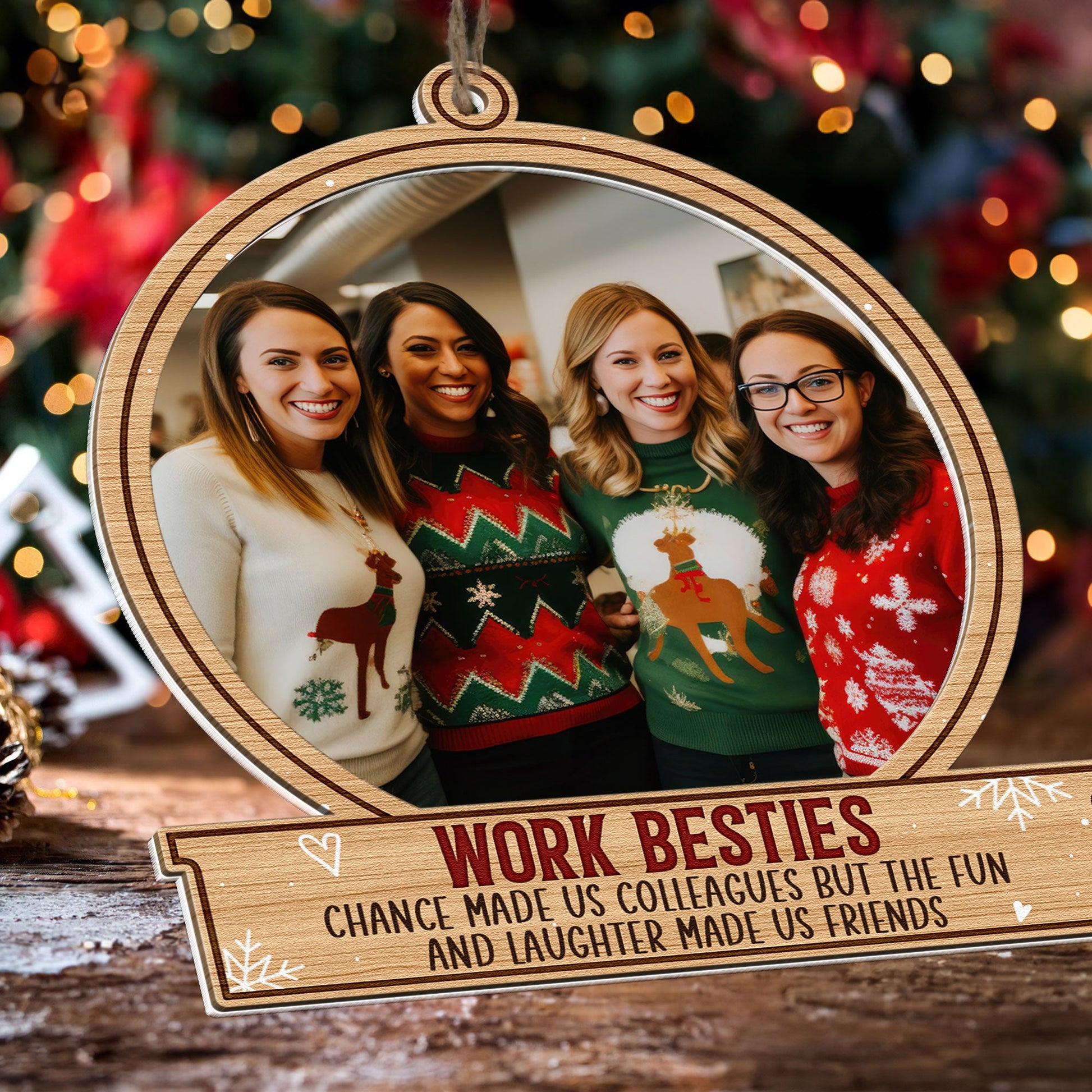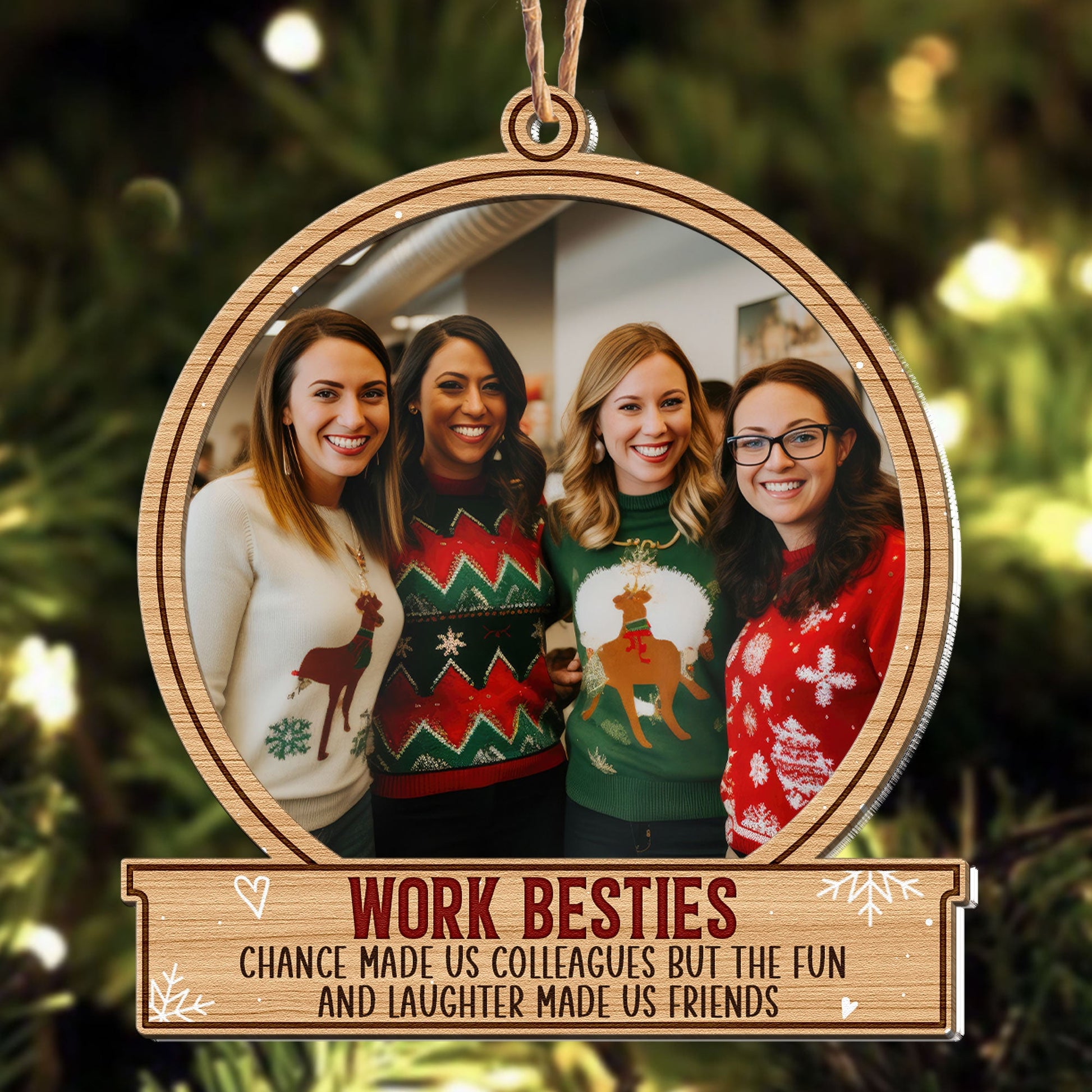 We've got something special for you and your work besties: A Personalized Wood And Acrylic Ornament With Bow.
