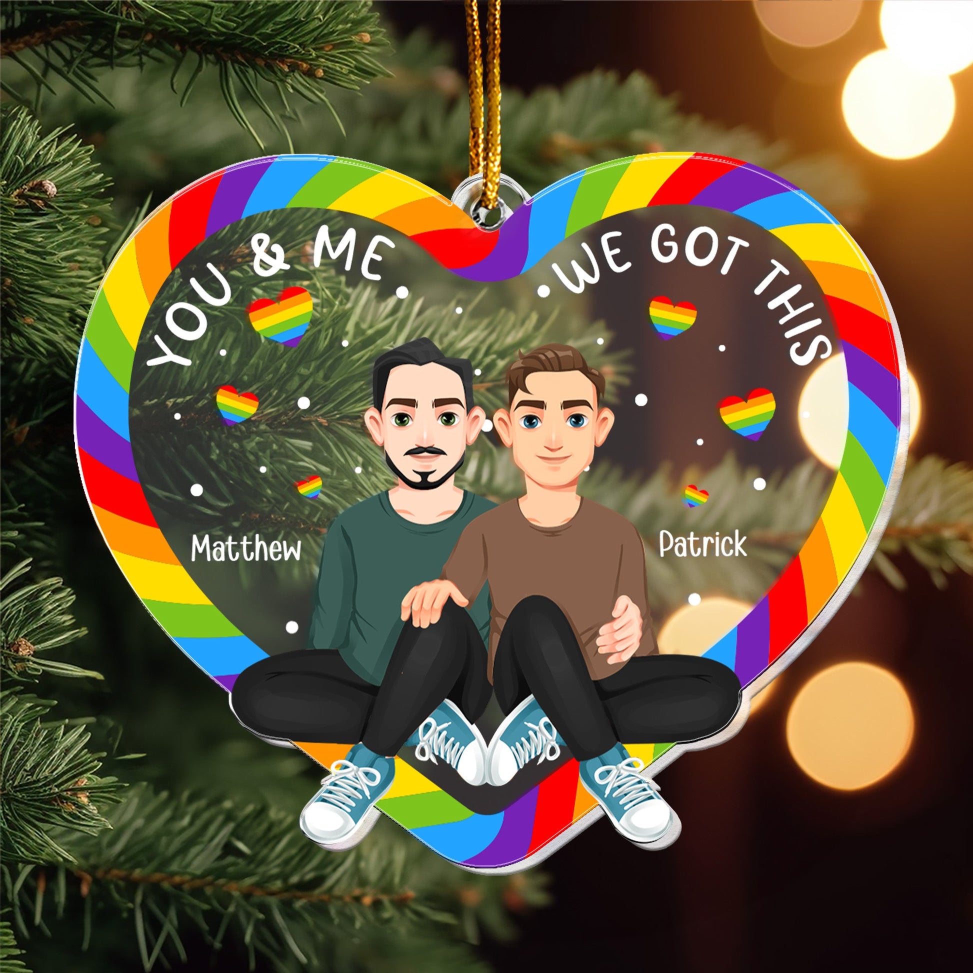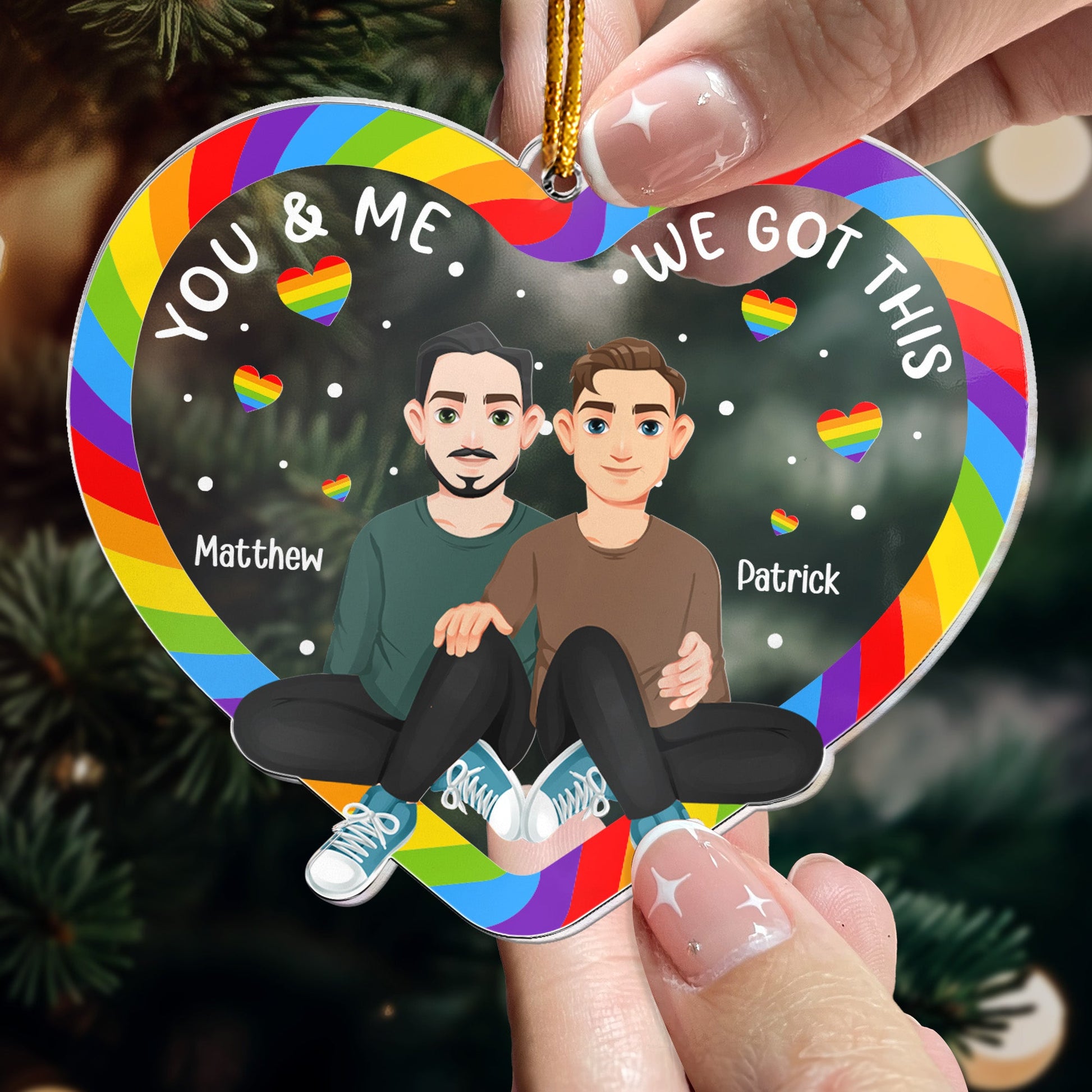 Celebrate love and unity this holiday season with the Personalized Acrylic Ornament – a heartfelt gift for LGBTQ+ couples. This custom ornament is designed to symbolize the beauty of love, equality, and togetherness, making it a meaningful addition to any couple's Christmas décor. Personalize it with their names to create a keepsake that will be cherished for years to come.