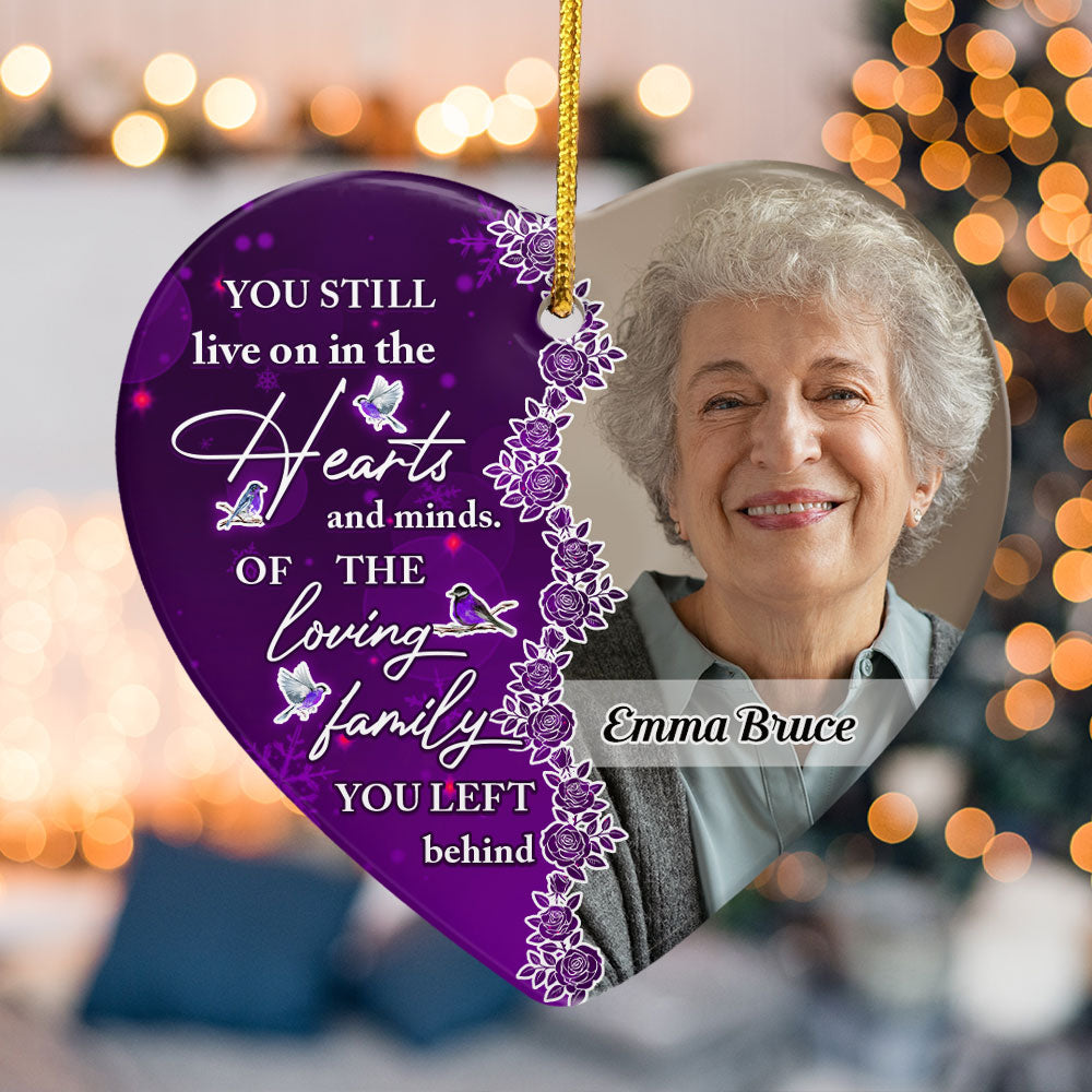 You Still Live On In The Hearts And Minds Ver 2 - Personalized Ceramic Photo Ornament