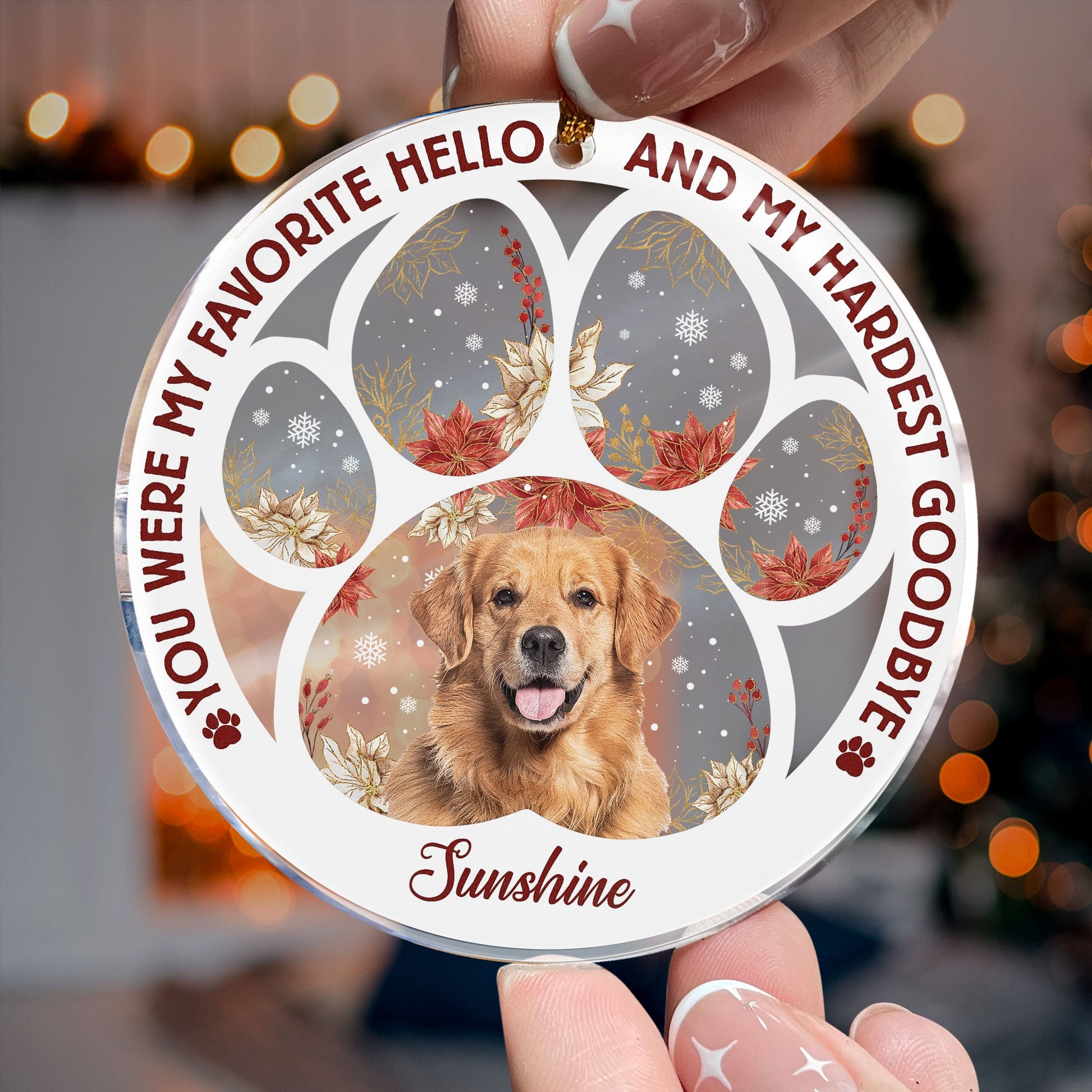 The Personalized Acrylic Photo Ornament is a heartfelt memorial and remembrance gift for pet lovers and owners.