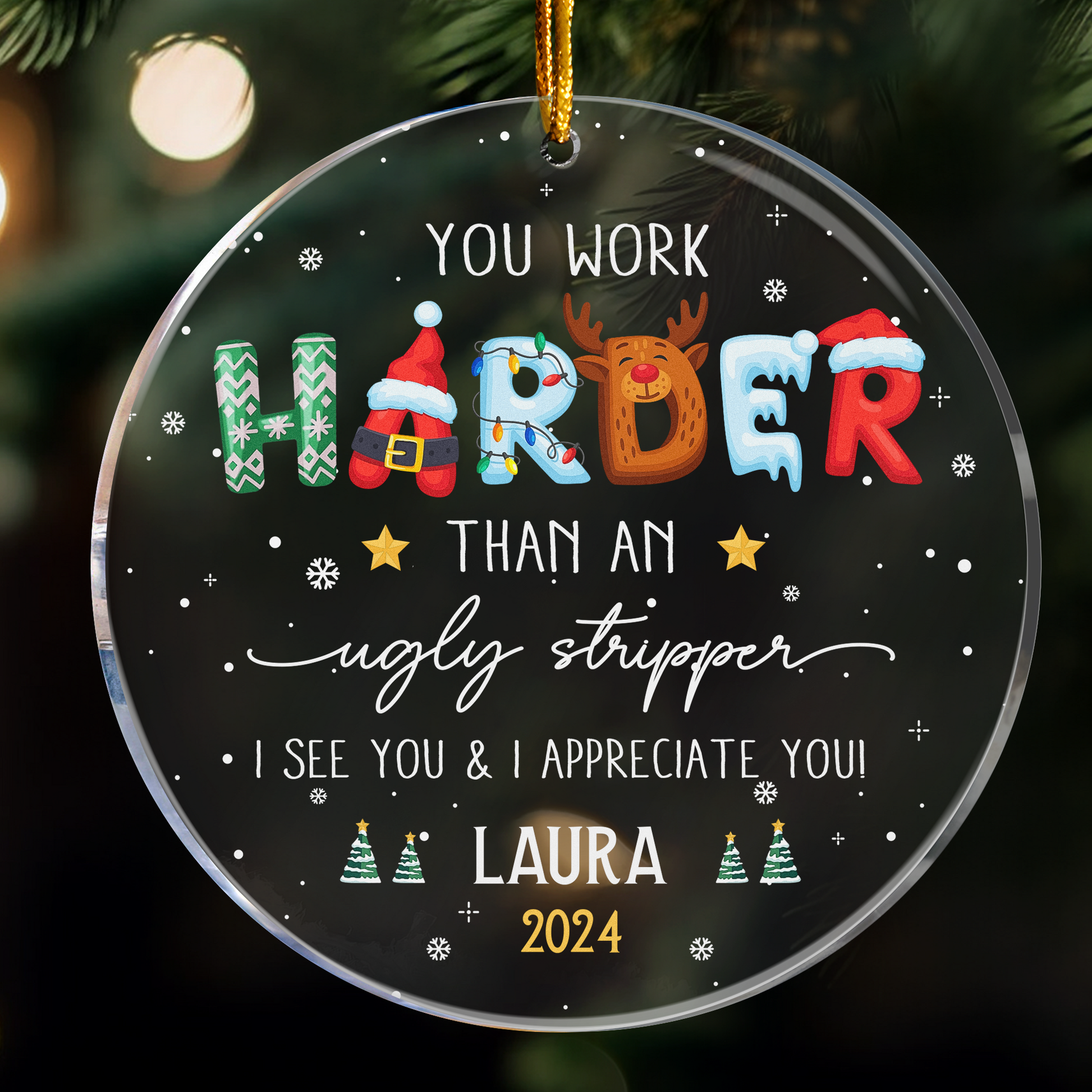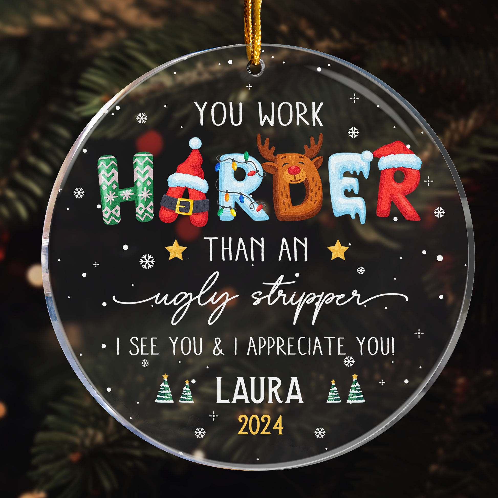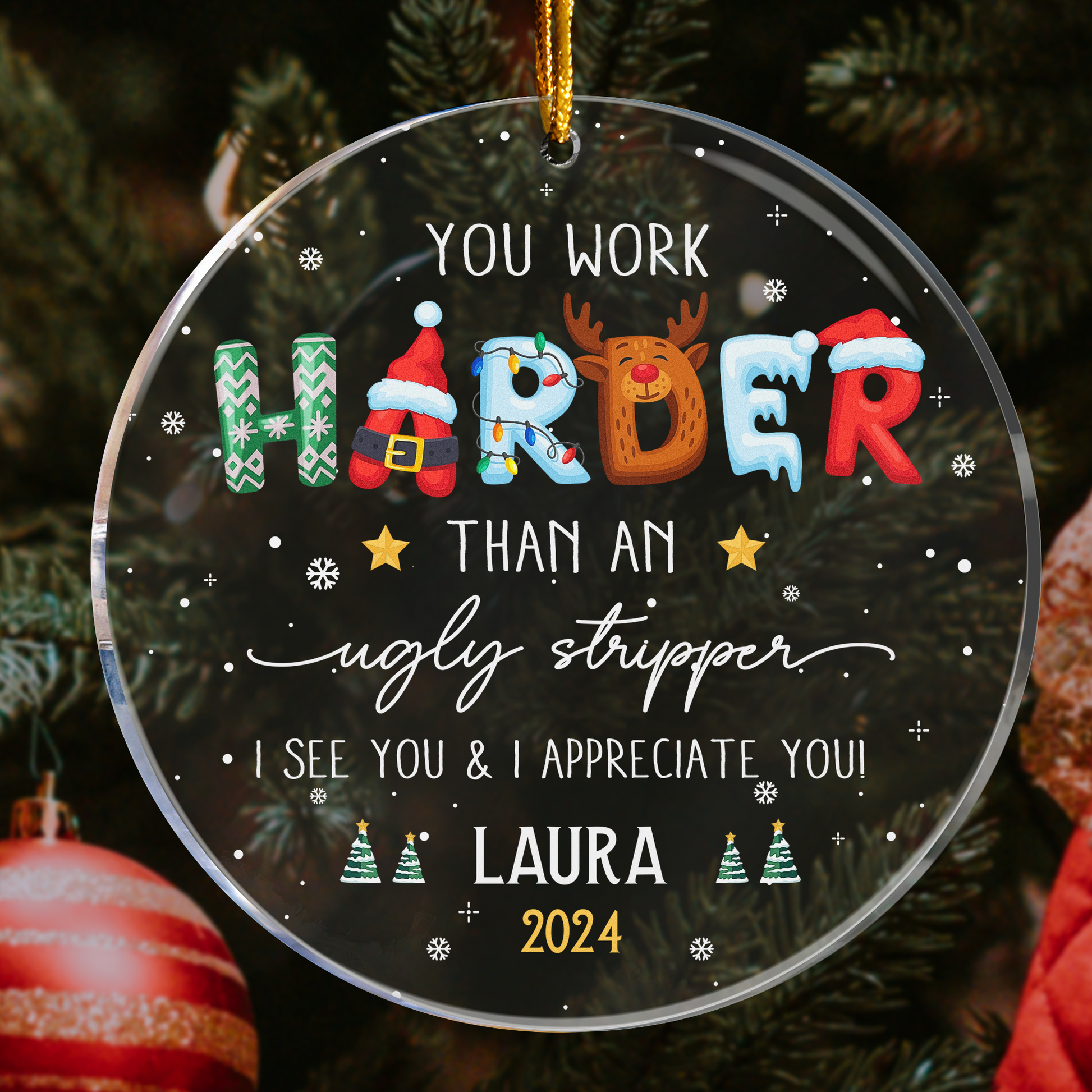 You Work Harder Than An Ugly Stripper - Thank You Ornament For Coworkers, Employee, Boss - Personalized Acrylic Ornament