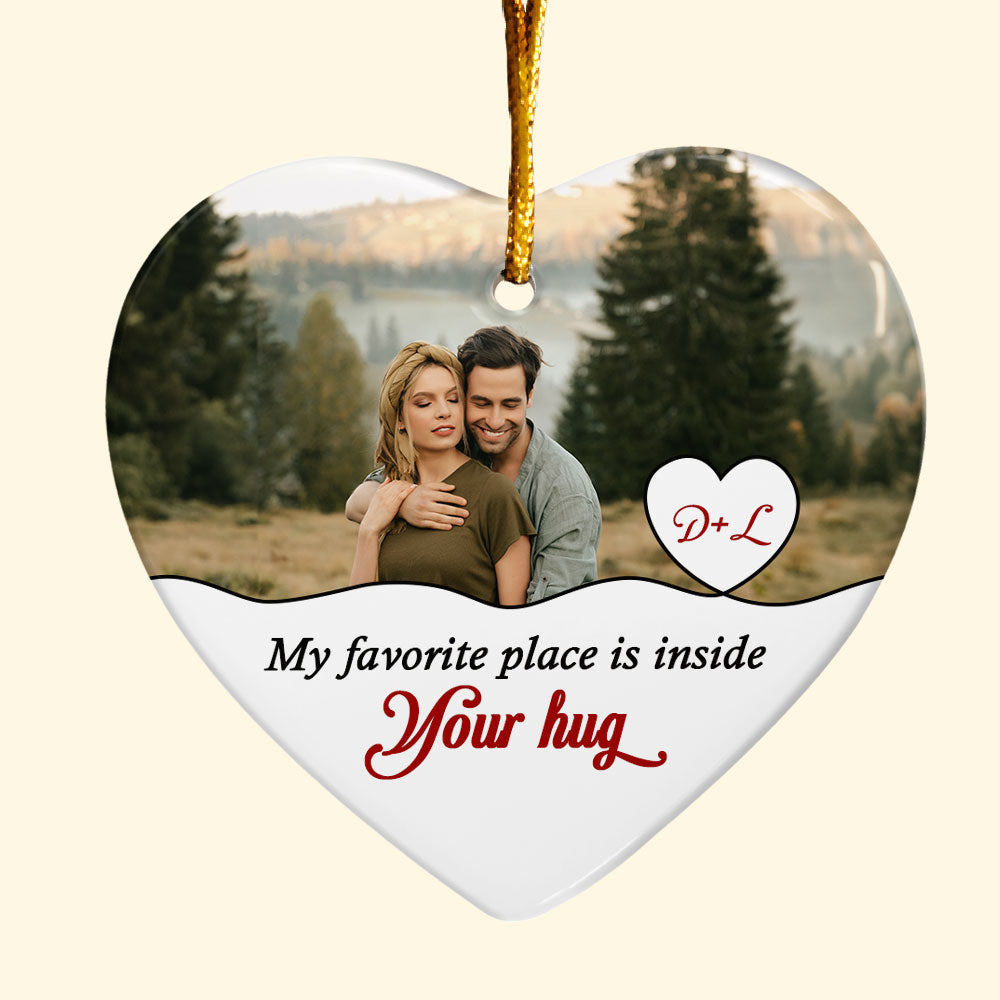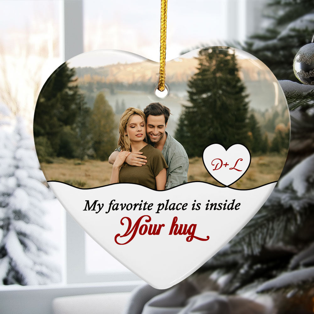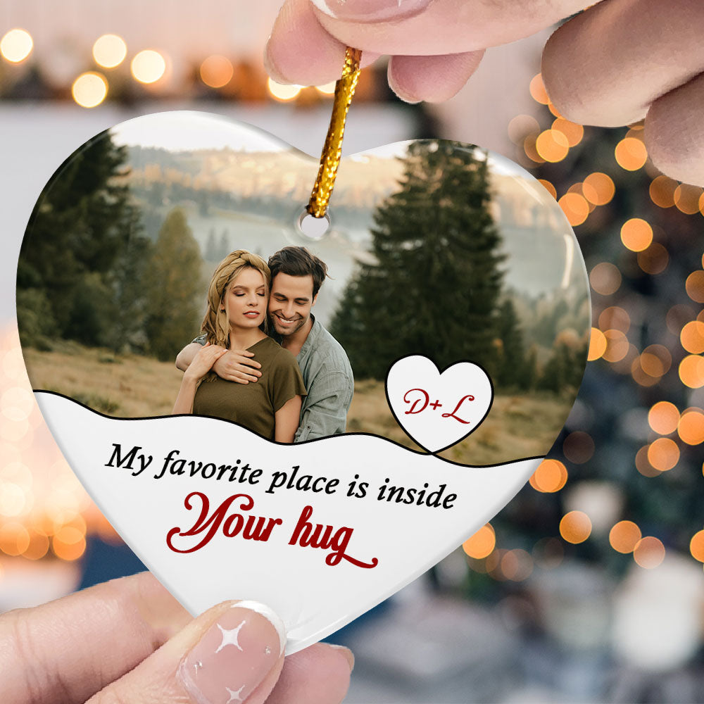 Your Hug Is My Favorite Place - Personalized Ceramic Photo Ornament