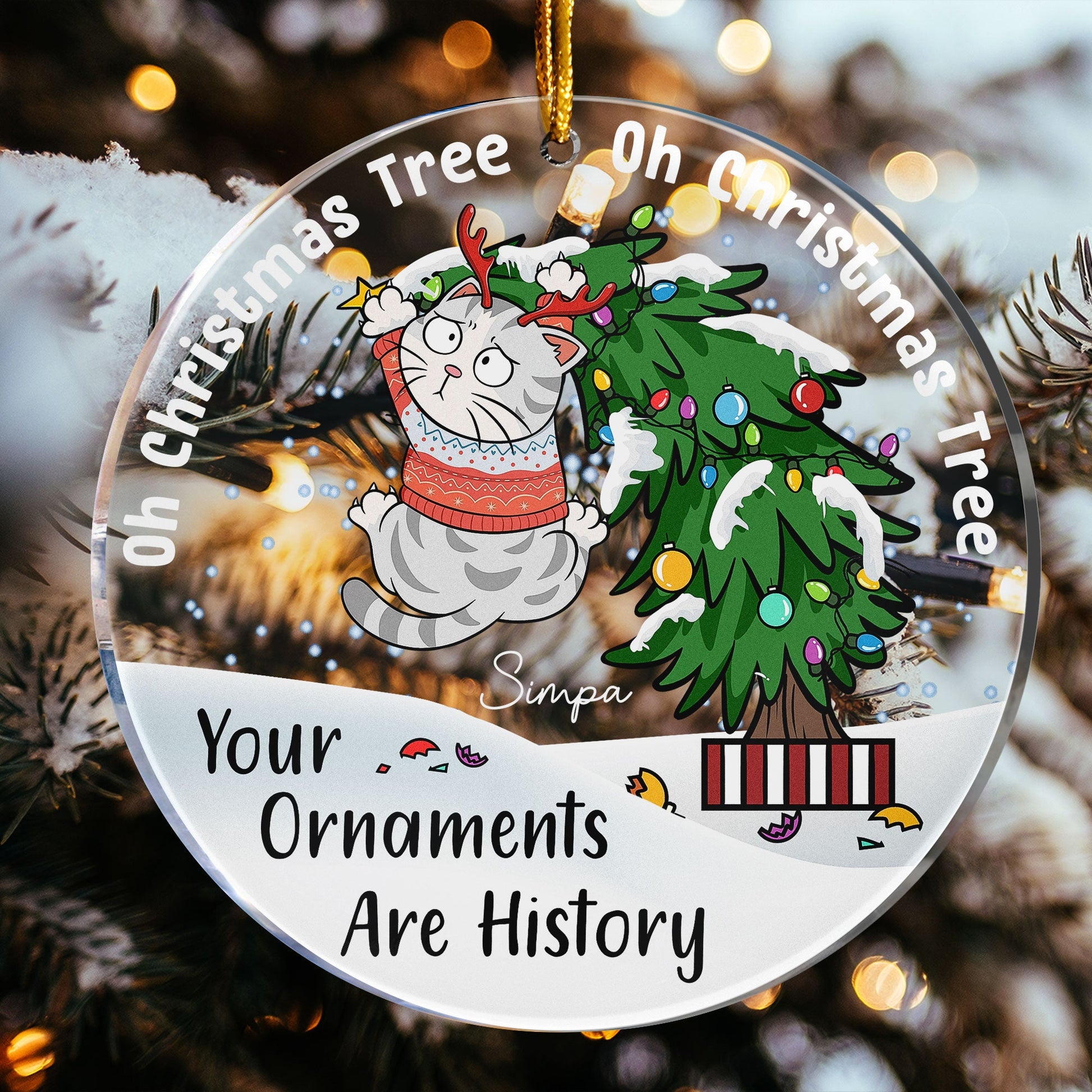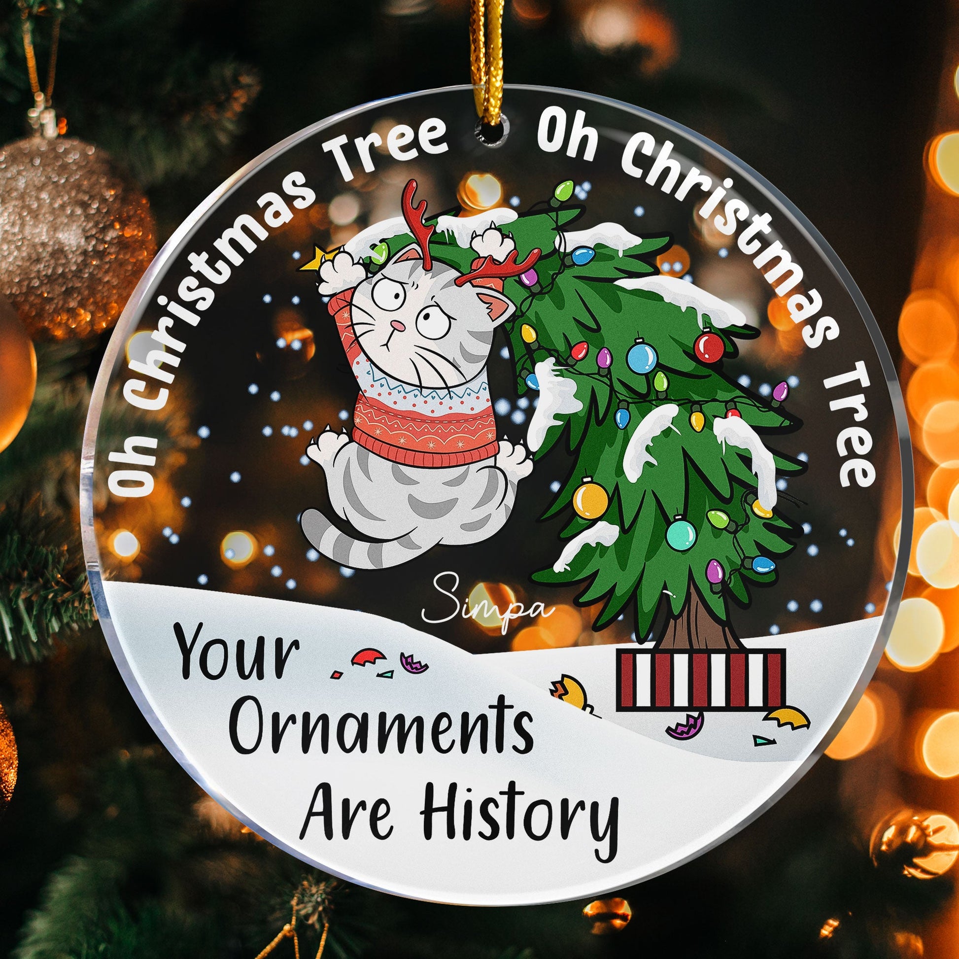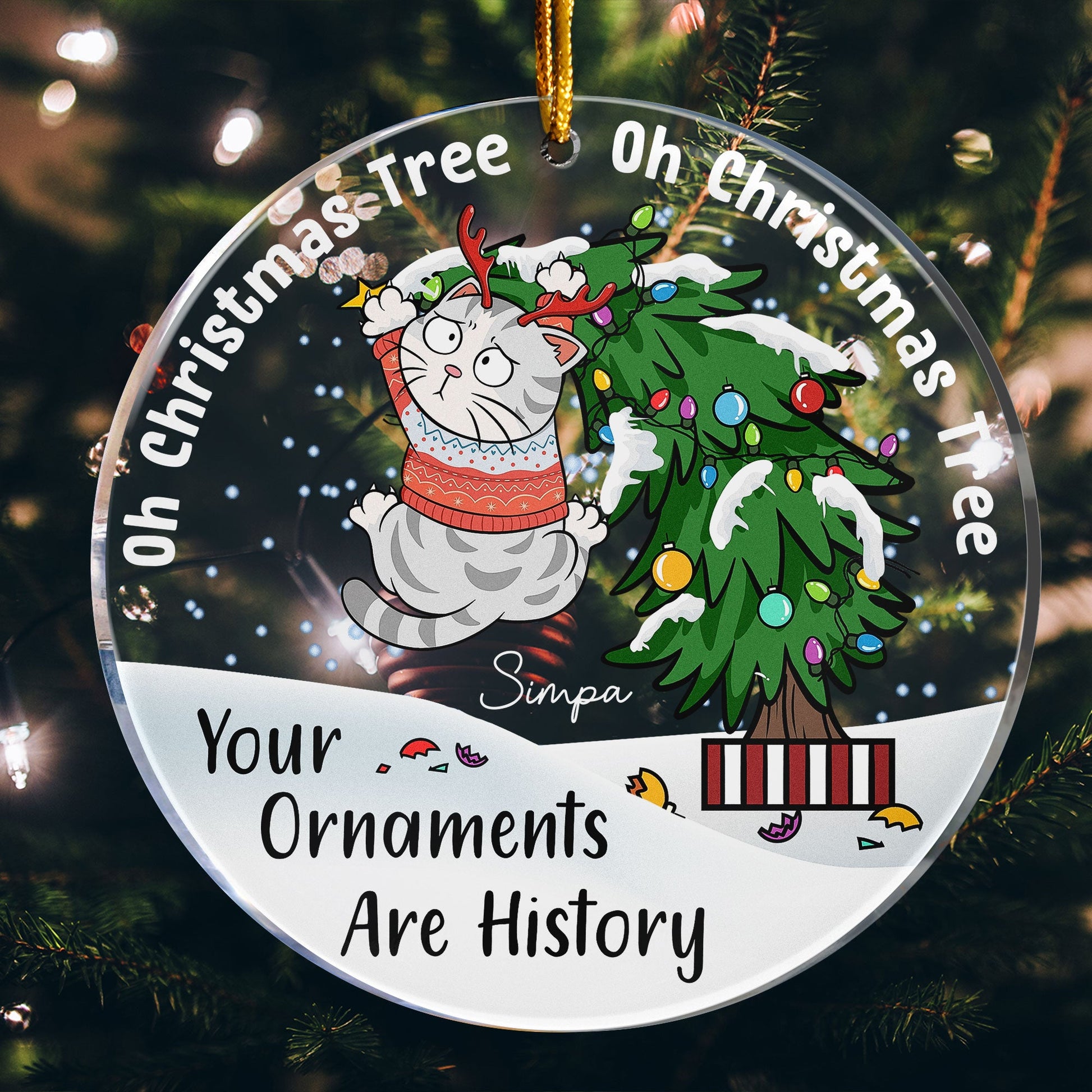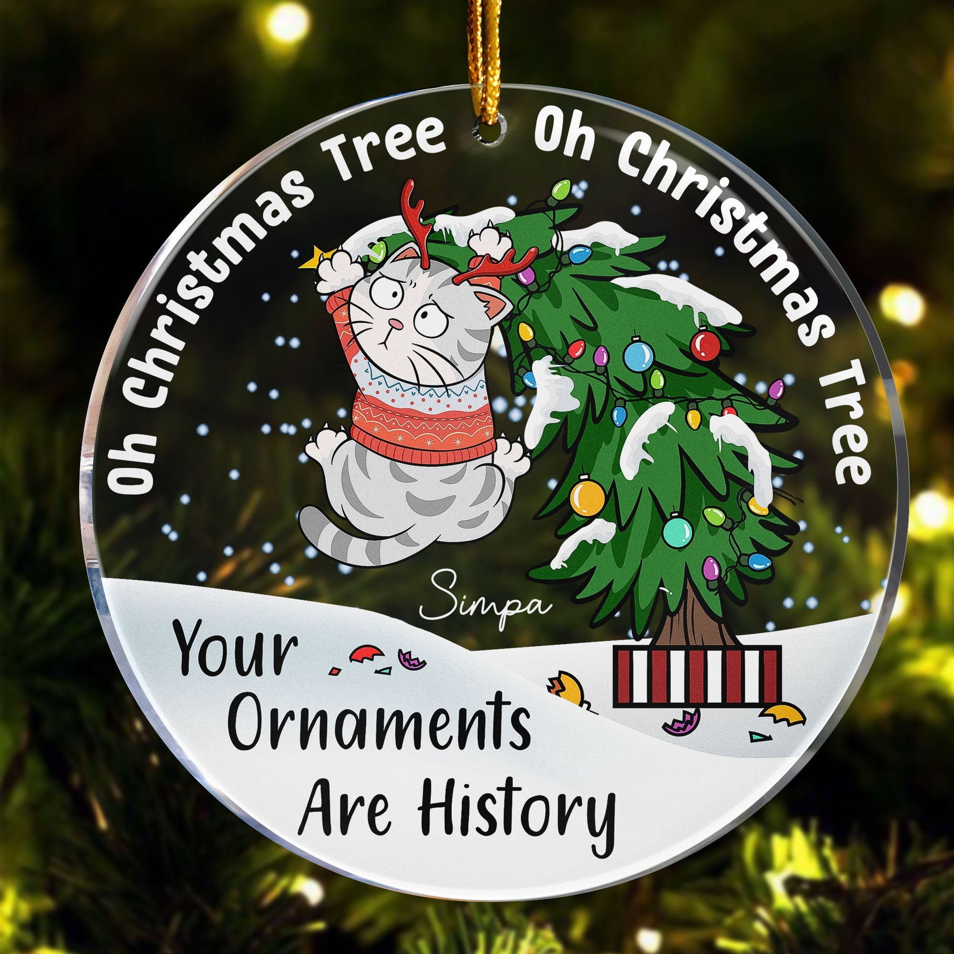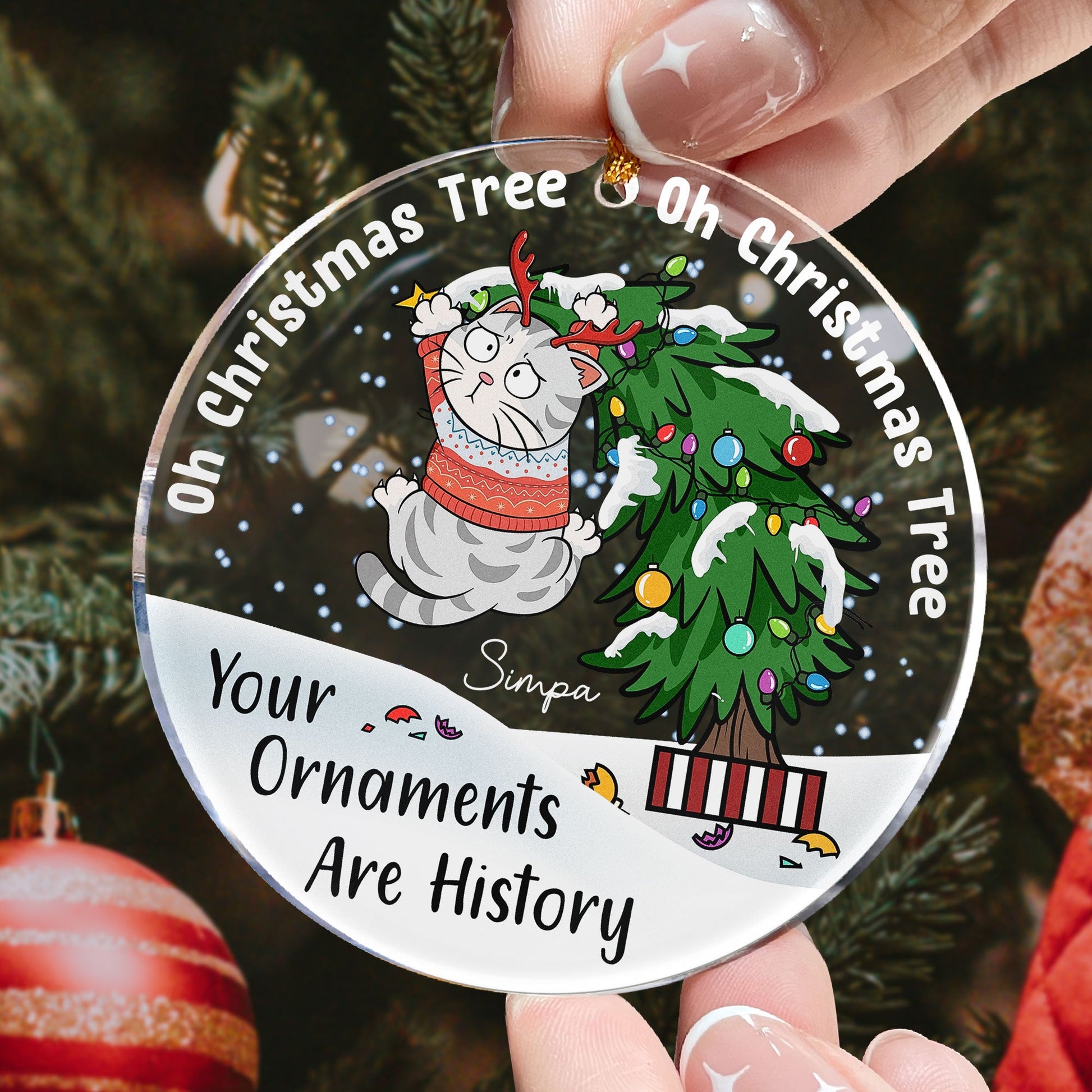 Bring a bit of humor to your holiday season with our Personalized Circle Acrylic Ornament featuring the cheeky phrase. This playful ornament showcases a mischievous cat clinging to a Christmas tree, perfectly capturing the chaos our feline friends can cause during the holidays. You can customize the ornament with different cat breeds to represent your own furry troublemakers, making it a unique and personal touch for your holiday decor.